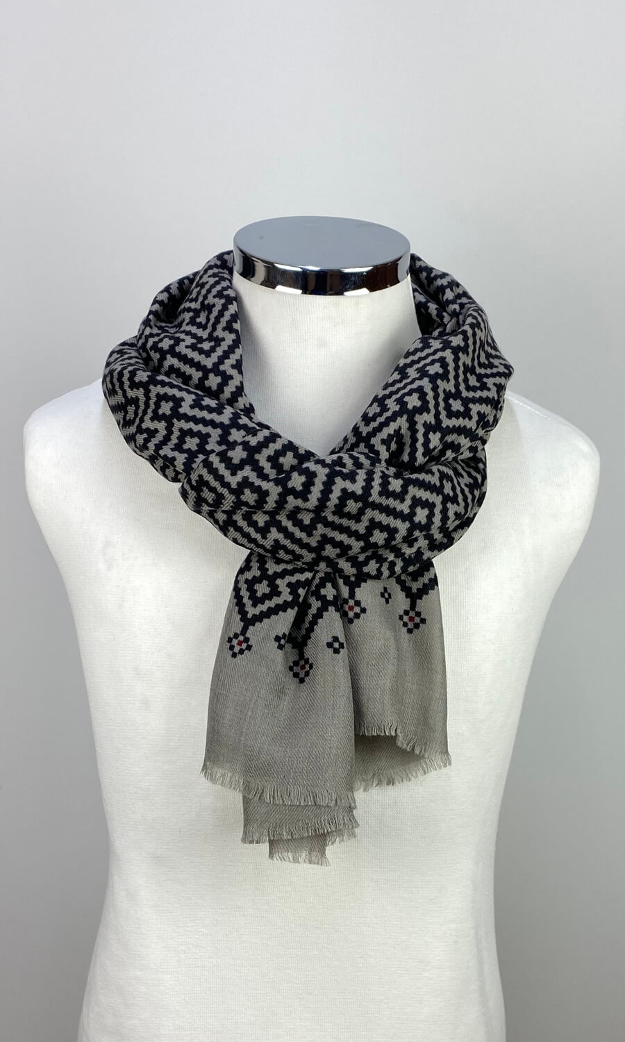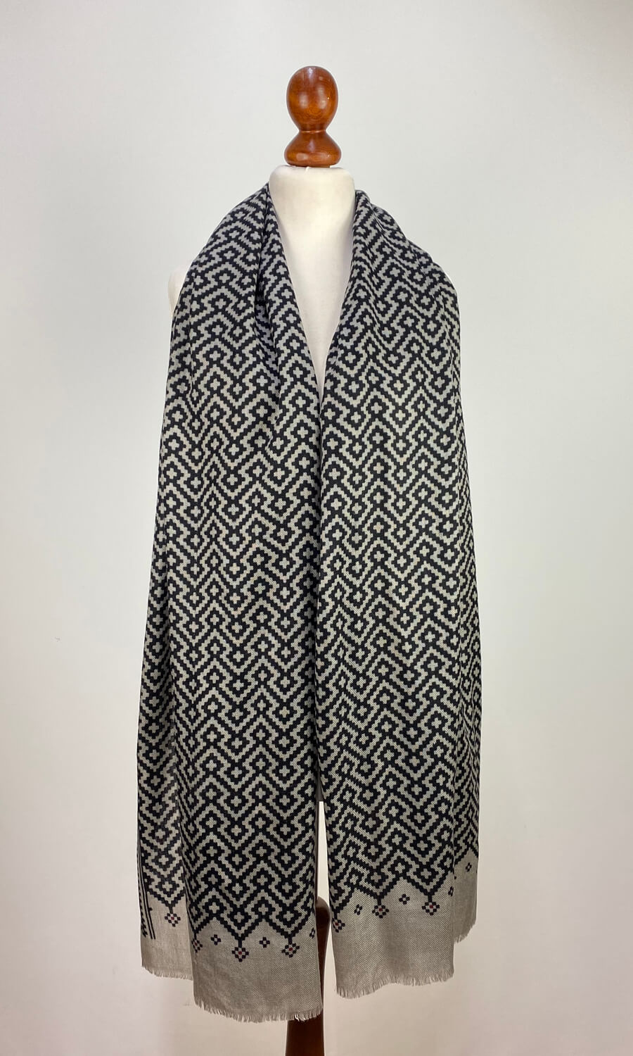 Hochwertig gefertigter Schal aus feiner Merinowolle mit besonderem Webmuster.