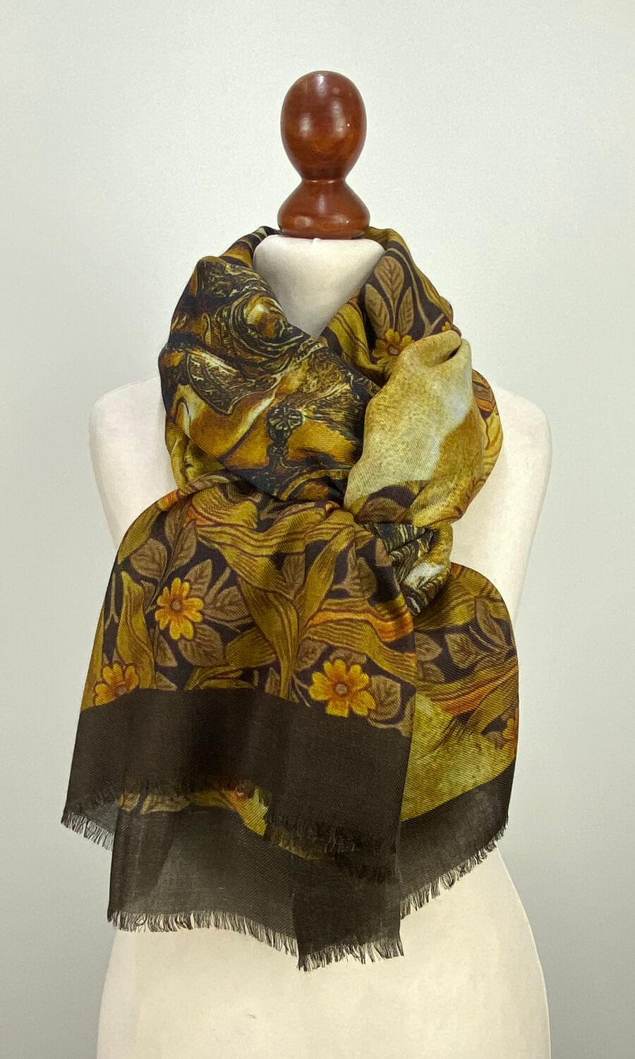 Er wurde in einem kleinen Atelier in der Region Kaschmir (Indien) gefertigt und ist somit streng limitiert. Mit seiner Größe von ca. 70 cm x 200 cm lässt er sich vielseitig binden und ist daher  bestens als Schultertuch geeignet. Der Schal ist in einem Mix aus modernen und klassischen Mustern bedruckt und somit der ideale Begleiter für jeden Anlass. Mit einem Gewicht von nur ca. 140g ist er federleicht und schenkt dir wohlige Wärme.