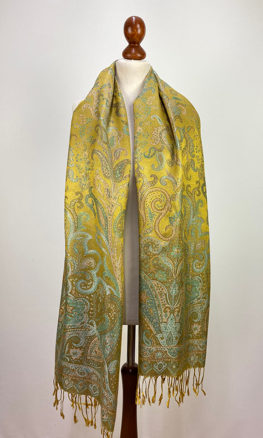 Diese einzigartige Stola ermöglicht mit ihrer Größe von ca. 70 cm x 200 cm vielseitige Binde- und Tragemöglichkeiten für jeden Anlass. Die Seide wurde vorab eingefärbt und dann gewebt, weshalb sie nicht rutsch und sich perfekt als Schultertuch eignet. Durch die akklimatisierende Eigenschaft des Materials und das herrlich leichte Gewicht von nur ca. 200g ist sie kaum spürbar und angenehm zu tragen.