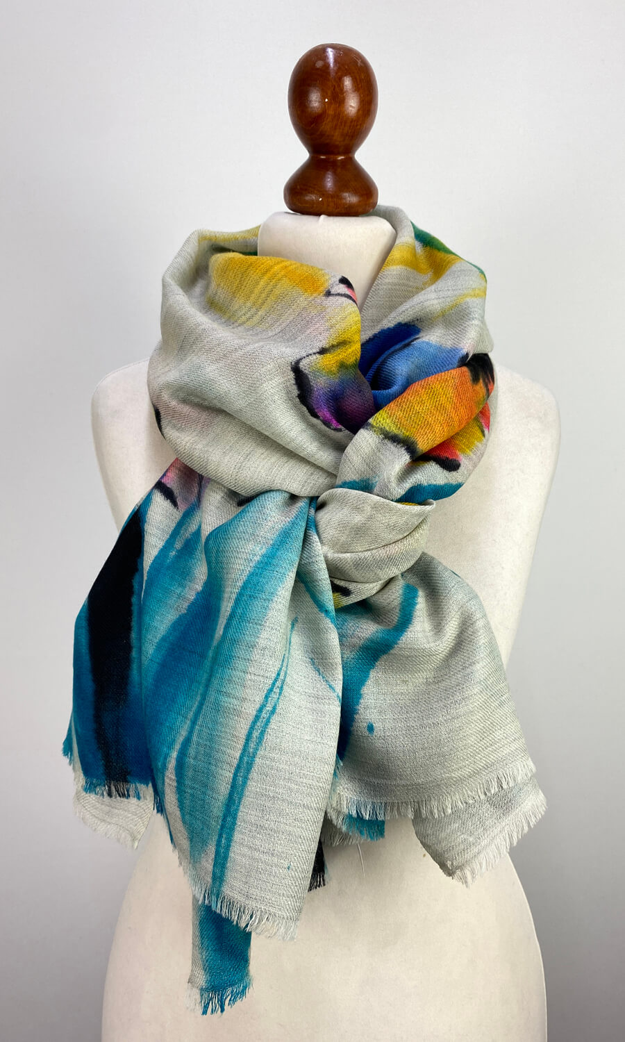 Dieser tolle Schal wurde in einer kleinen Firma in Indien gefertigt und ist streng limitiert. Hergestellt aus hochwertiger Merinowolle, bietet er ein luxuriöses und weiches Tragegefühl. Die feinen Merinofasern sorgen für Wärme und Komfort, während das einzigartige Blumenmuster einen Hauch von Eleganz und Frische verleiht.