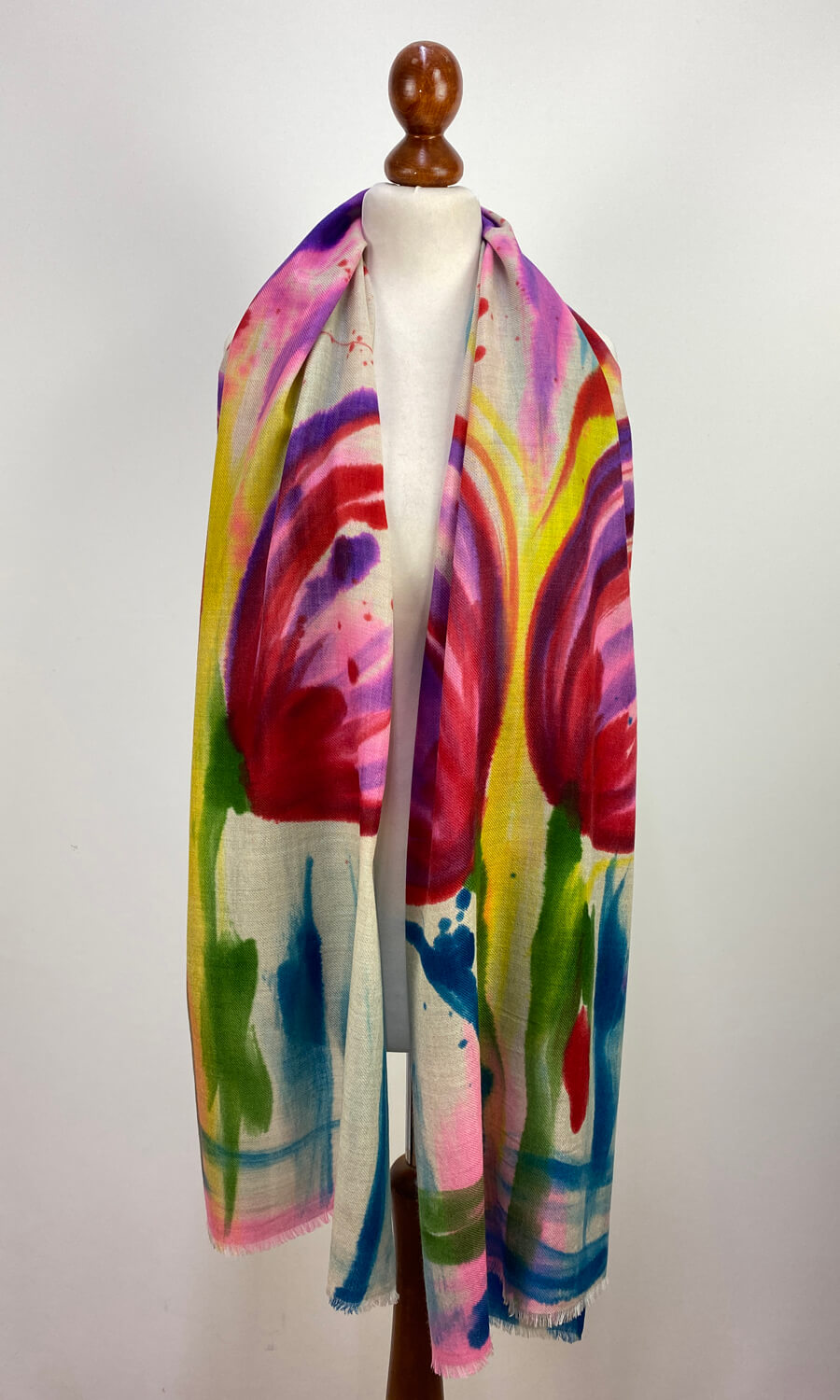 Hochwertig gefertigter Schal aus feiner Merinowolle mit floralen Muster.