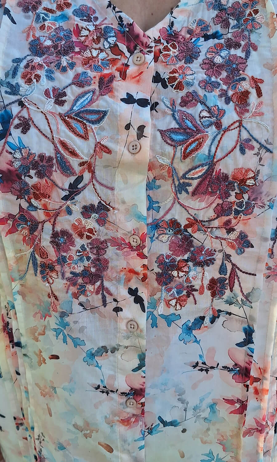 Die sanften Farben in Kombination mit der tollen Handbestickung, verleihen deinem Look eine sommerliche und erfrischende Note. Die hochwertige Baumwolle bietet dir nicht nur ein angenehmes Tragegefühl, sondern auch optimale Atmungsaktivität, damit du den ganzen Tag über Wohlgefühl genießen kannst. Egal ob im Büro, bei festlichen Anlässen oder in deiner Freizeit - diese Bluse wird dich in jedem Moment strahlen lassen.