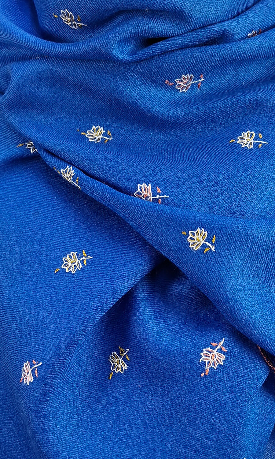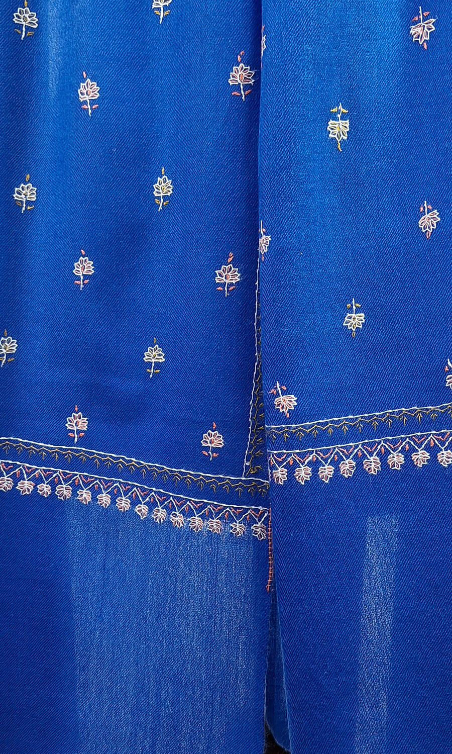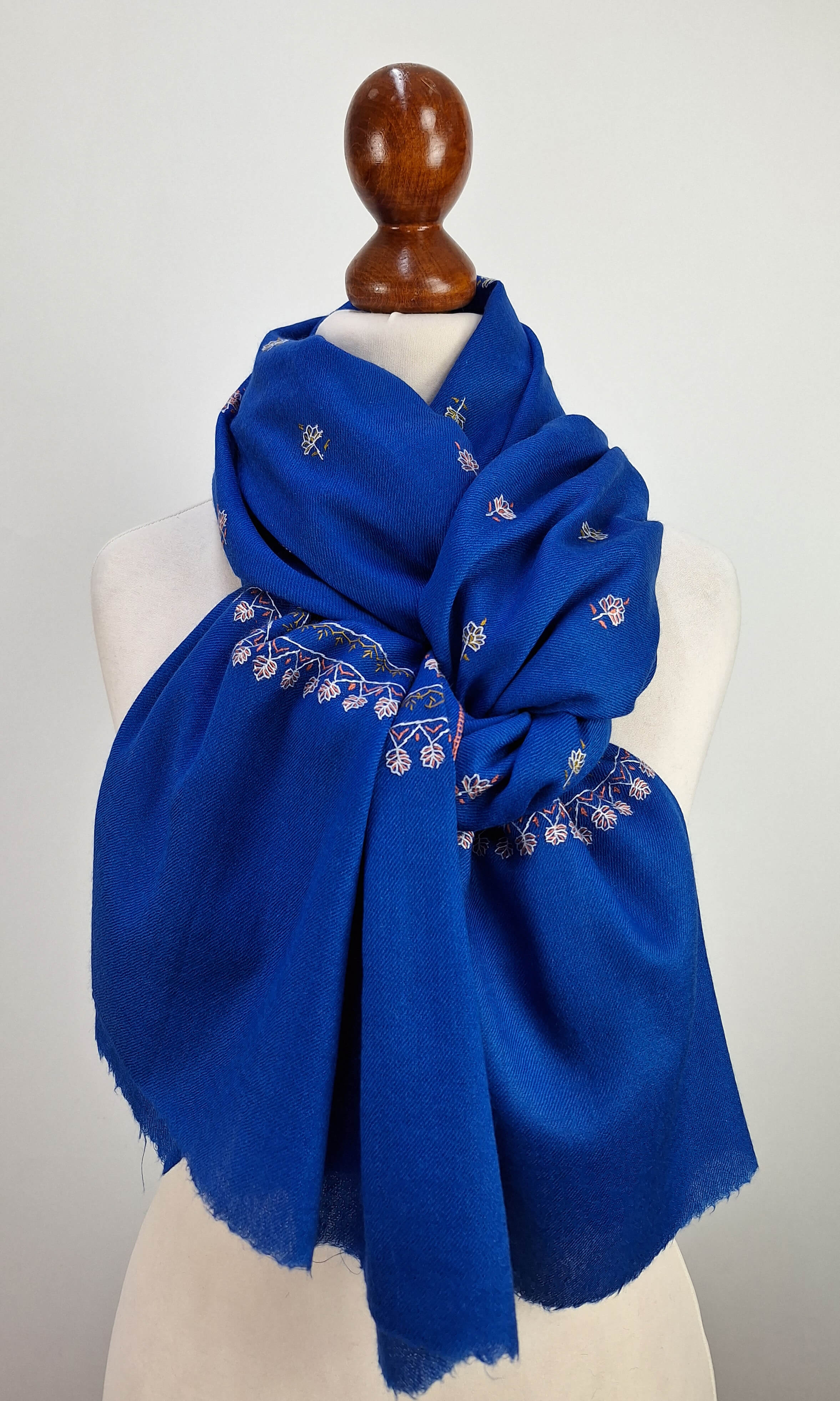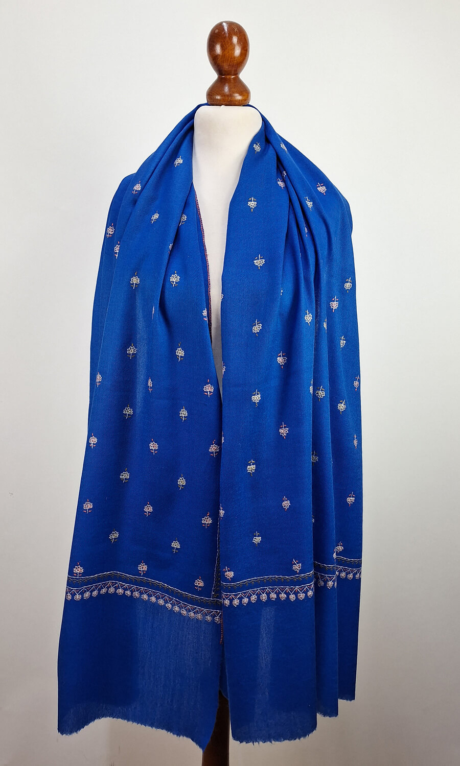 Handbestickte Stola aus feiner Merinowolle.