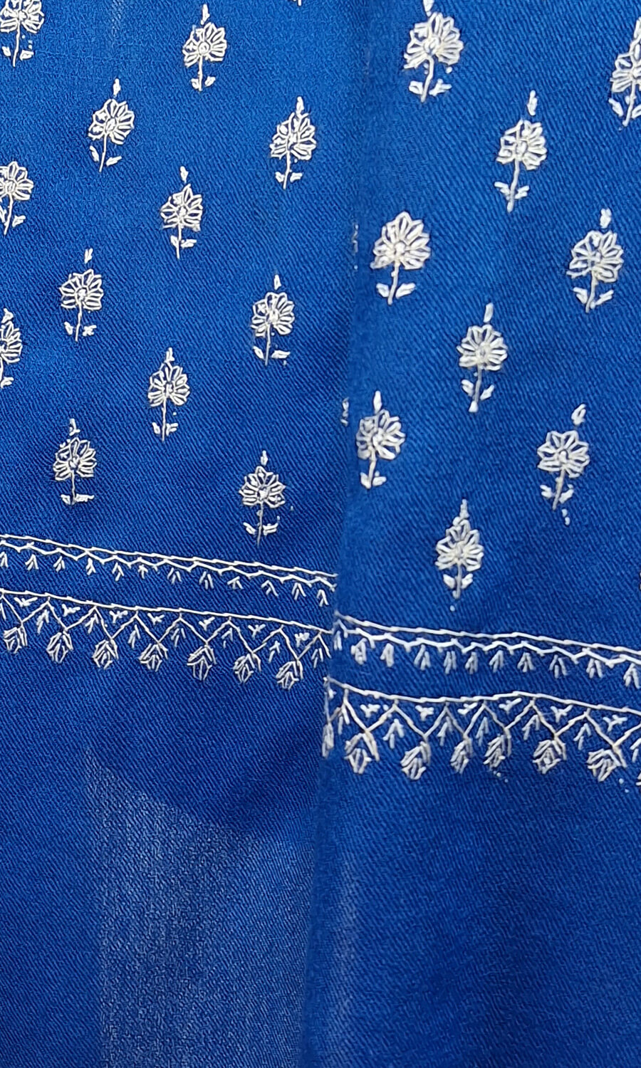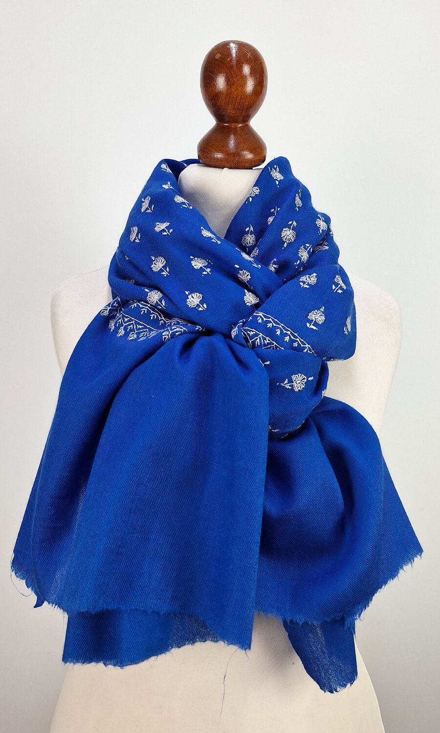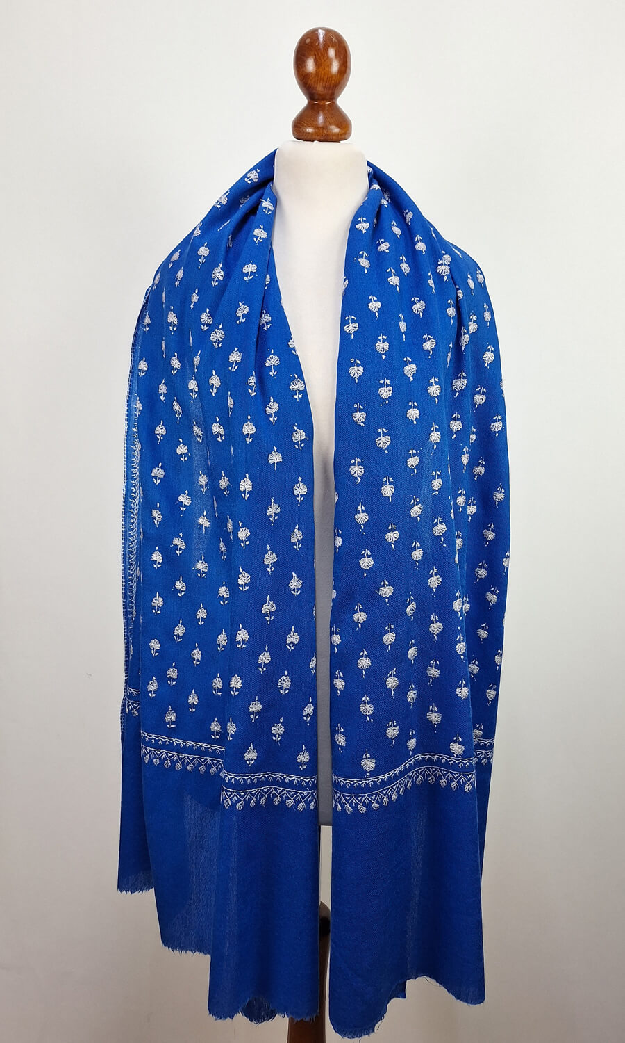 Handbestickte Stola aus feiner Merinowolle.