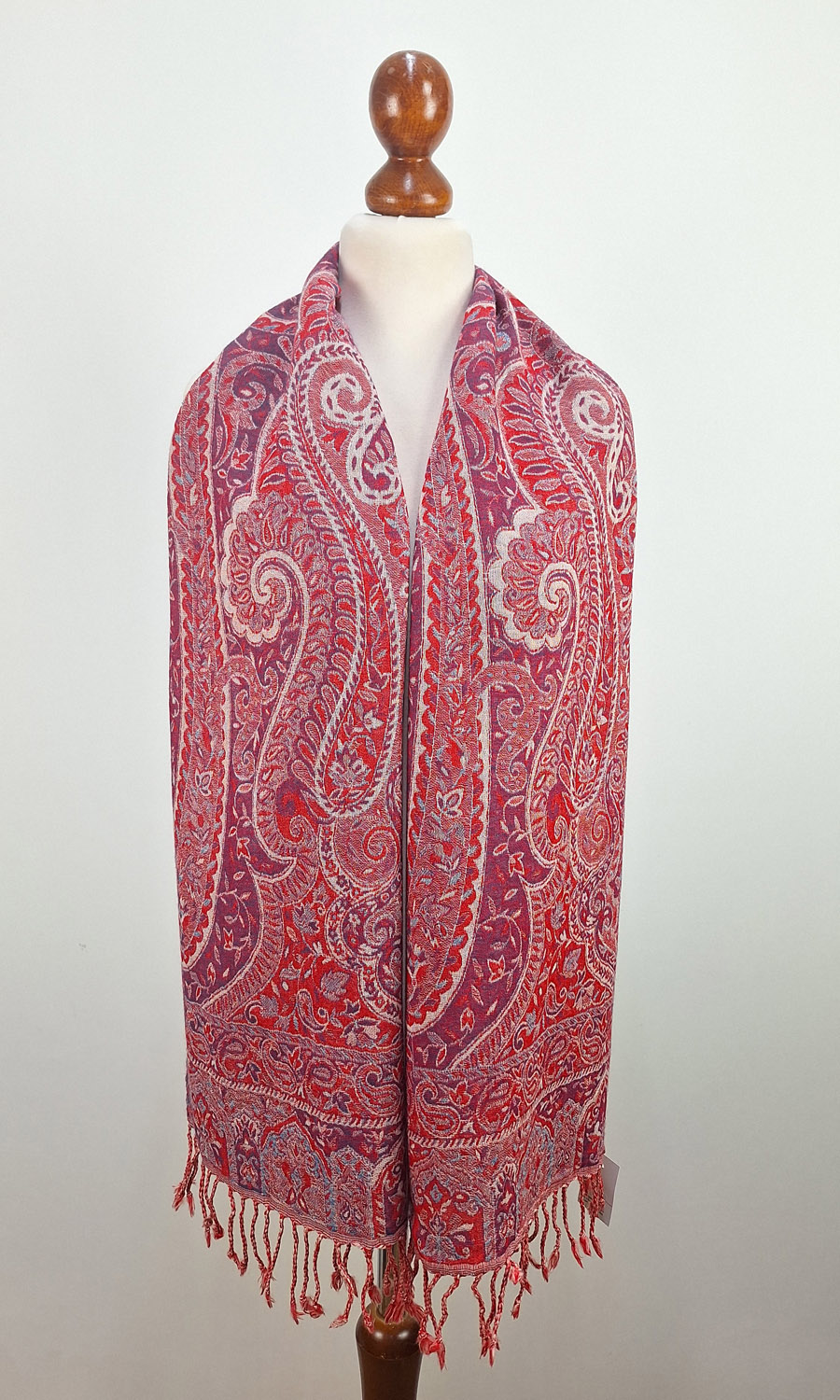 Dieser wunderschöne Schal wurde in einem kleinen Betrieb in der Region Kaschmir (Indien) gefertigt und ist eine limitierte Kollektion. Mit seiner Größe von ca. 35 cm x 160 cm lässt er sich vielseitig binden und ist für das perfekte Accessoire für eine Jacke, Pullover oder Bluse. Durch seine doppelte Webung hat der Schal zwei unterschiedliche Seiten, die sich in der Farbgebung leicht voneinander unterscheiden. Mit einem Gewicht von nur ca. 140g ist er federleicht an deinem Hals und schenkt dir wohlige Wärme.