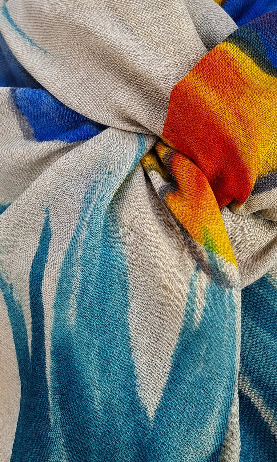 Dieser tolle Schal wurde in einer kleinen Firma in Indien gefertigt und ist streng limitiert. Hergestellt aus hochwertiger Merinowolle, bietet er ein luxuriöses und weiches Tragegefühl. Die feinen Merinofasern sorgen für Wärme und Komfort, während das einzigartige Blumenmuster einen Hauch von Eleganz und Frische verleiht.