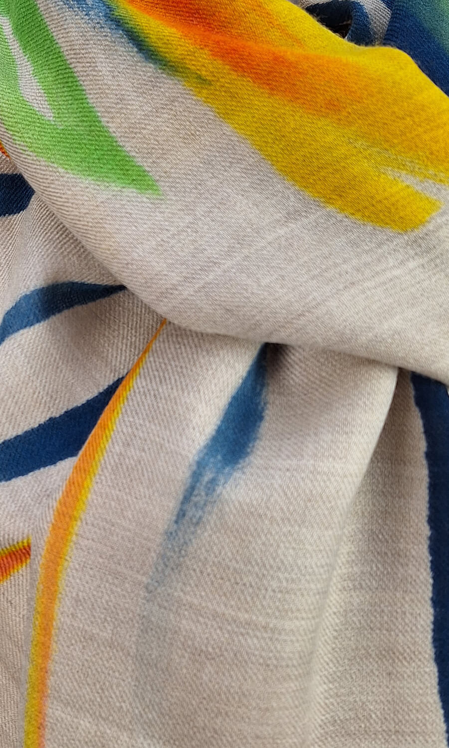 Dieser tolle Schal wurde in einer kleinen Firma in Indien gefertigt und ist streng limitiert. Hergestellt aus hochwertiger Merinowolle, bietet er ein luxuriöses und weiches Tragegefühl. Die feinen Merinofasern sorgen für Wärme und Komfort, während das einzigartige Blumenmuster einen Hauch von Eleganz und Frische verleiht.