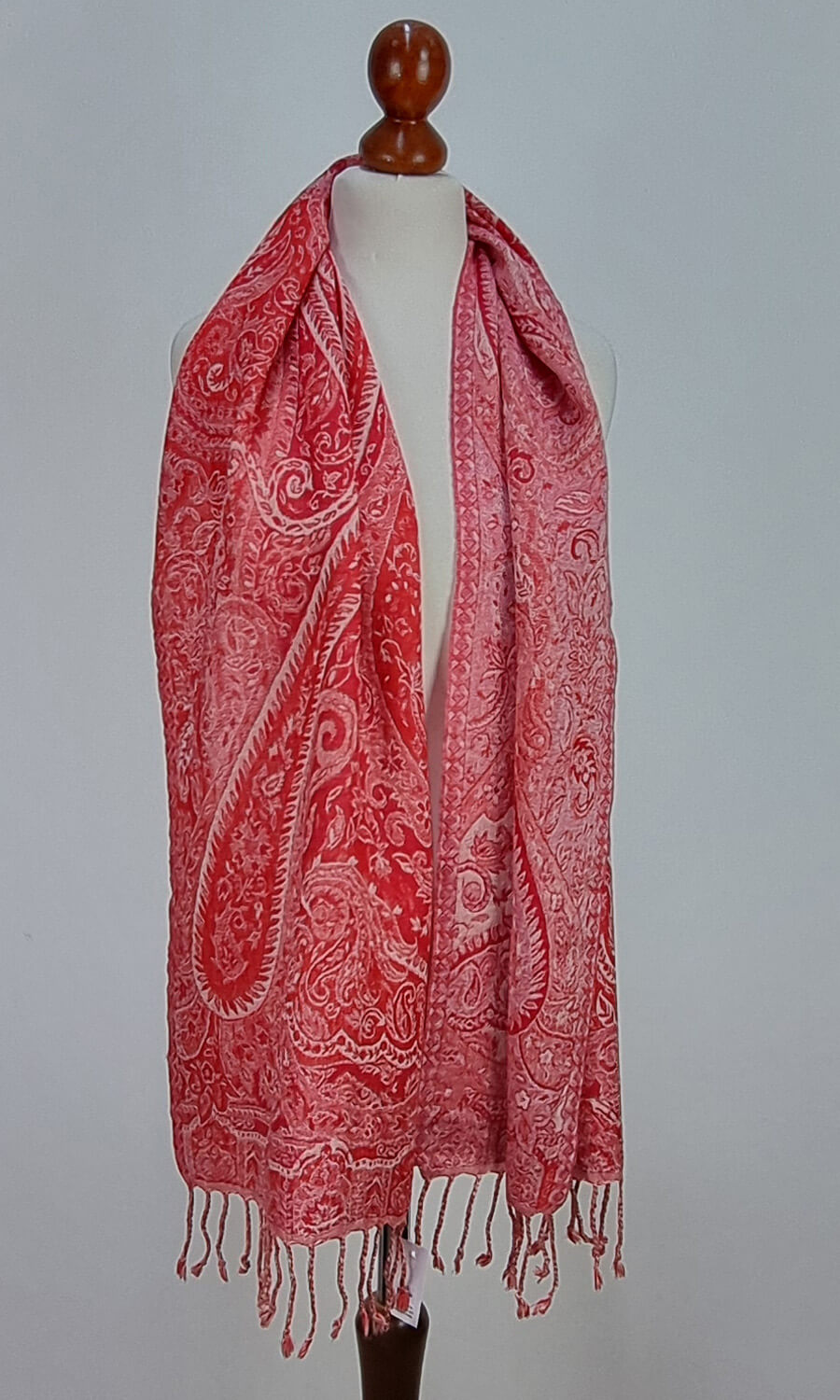 Dieser wunderschöne Schal wurde in einem kleinen Betrieb in der Region Kaschmir (Indien) gefertigt  und ist eine limitierte Kollektion. Mit seiner Größe von ca. 35 cm x 160 cm lässt er sich vielseitig binden und ist für das perfekte Accessoire für eine Jacke, Pullover oder Bluse. Durch seine doppelte Webung hat der Schal zwei unterschiedliche Seiten, die sich in der Farbgebung leicht voneinander unterscheiden. Mit einem Gewicht von nur ca. 140g ist er federleicht an deinem Hals und schenkt dir wohlige Wärme.