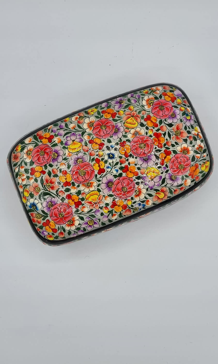 Unsere handbemalte Dose aus Papermaché ist ein wunderschönes und einzigartiges Kunstwerk, das nicht nur als Aufbewahrungsdose, sondern auch als dekoratives Element in Ihrem Zuhause dient. Jede Dose wird von talentierten Handwerkern handbemalt, wodurch jedes Stück ein Unikat ist. Die Dose ist aus hochwertigem Papermaché gefertigt, was sie leicht und dennoch robust macht. Die handgemalten Designs reichen von Paisley-Mustern bis hin zu floralen Motiven und bringen Farbe und Leben in jeden Raum. Die Dose eignet sich perfekt zur Aufbewahrung von Schmuck, kleinen Gegenständen oder als Geschenkverpackung für besondere Anlässe.