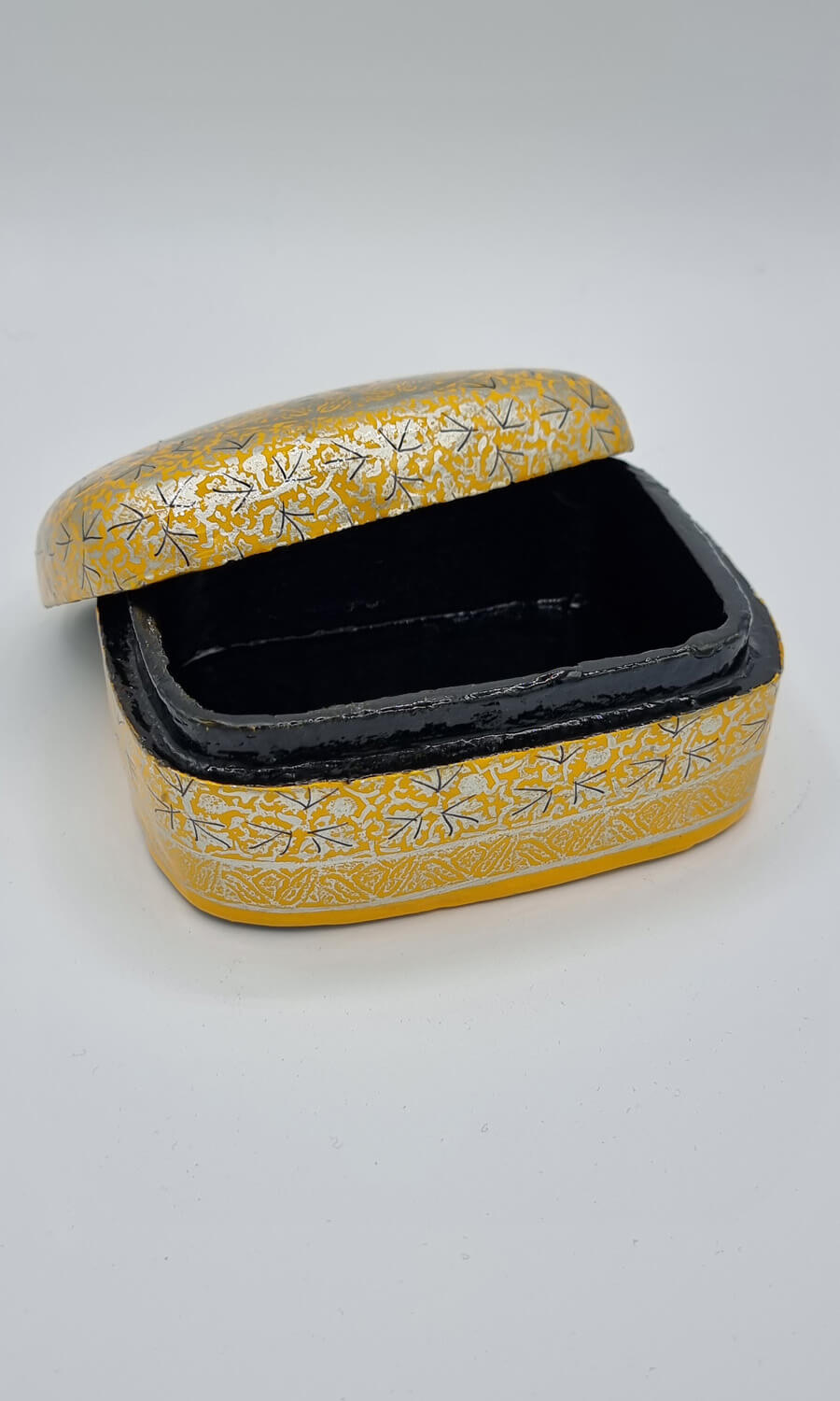 Unsere handbemalte Dose aus Papermaché ist ein wunderschönes und einzigartiges Kunstwerk, das nicht nur als Aufbewahrungsdose, sondern auch als dekoratives Element in ihrem Zuhause dient. Jede Dose wird von talentierten Handwerkern handbemalt, wodurch jedes Stück ein Unikat ist. Die Dose ist aus hochwertiger Papermaché gefertigt, was sie leicht und dennoch robust macht. Die handgemalten Designs reichen von Paisley-Mustern bis hin zu floralen Motiven und bringen Farbe und Leben in jeden Raum. Die Dose eignet sich perfekt zur Aufbewahrung von Schmuck, kleinen Gegenständen oder als Geschenkverpackung für besondere Anlässe.