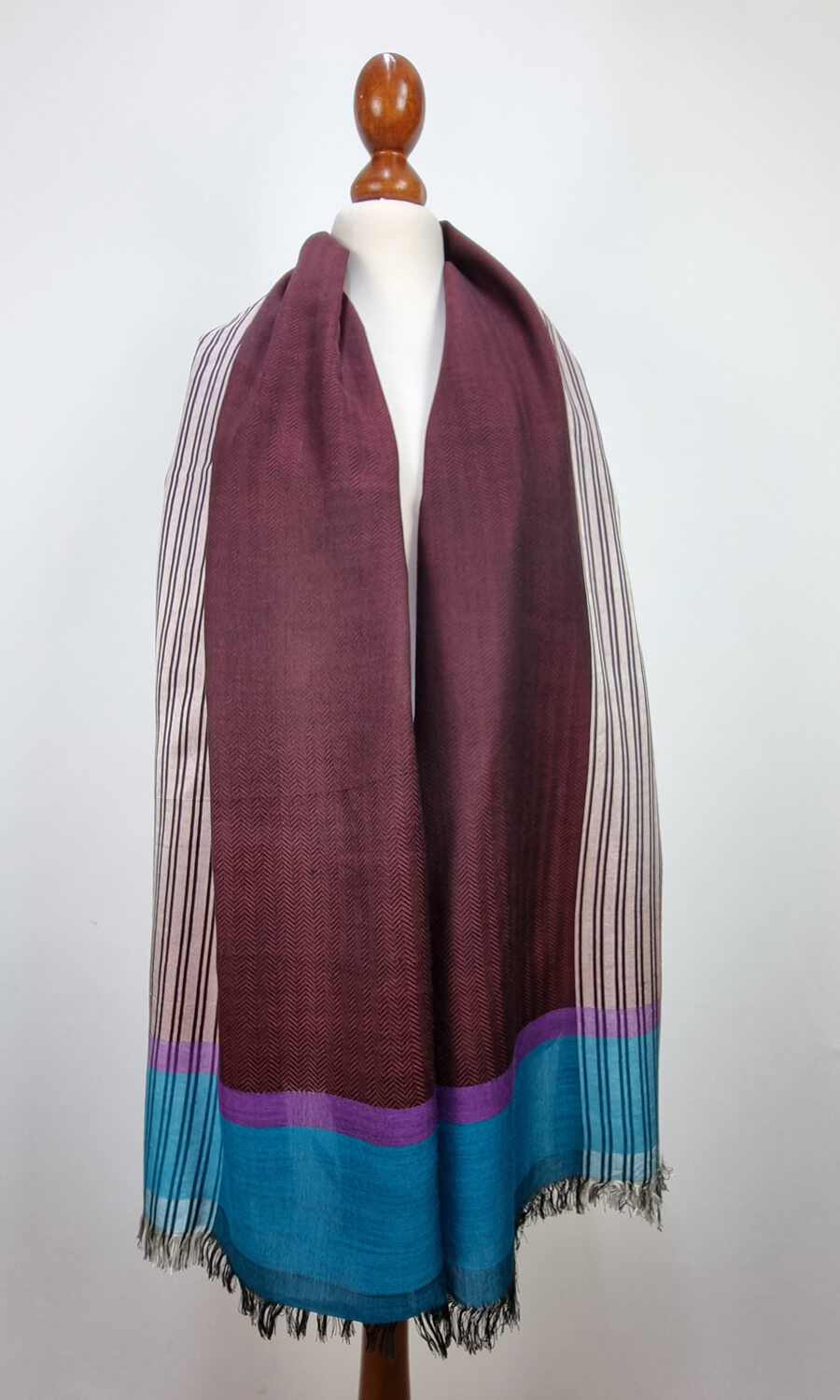 Diese einzigartige Stola ermöglicht mit ihrer Größe von ca. 70 cm x 200 cm vielseitige Binde- und Tragemöglichkeiten für jeden Anlass. Das feine Diamantwebmuster des Schals verleiht jedem Outfit zusätzliche Eleganz. Durch diesen wunderbaren Materialmix und das herrlich leichte Gewicht von ca. 150g ist sie kaum spürbar und angenehm zu tragen.