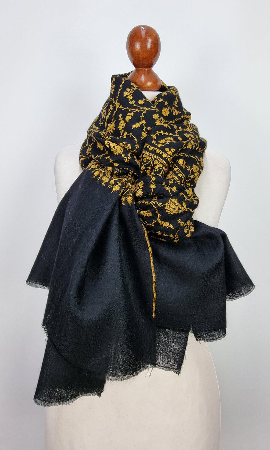 Großer Damenschal aus feinster Pashminawolle, per Hand bestickt.