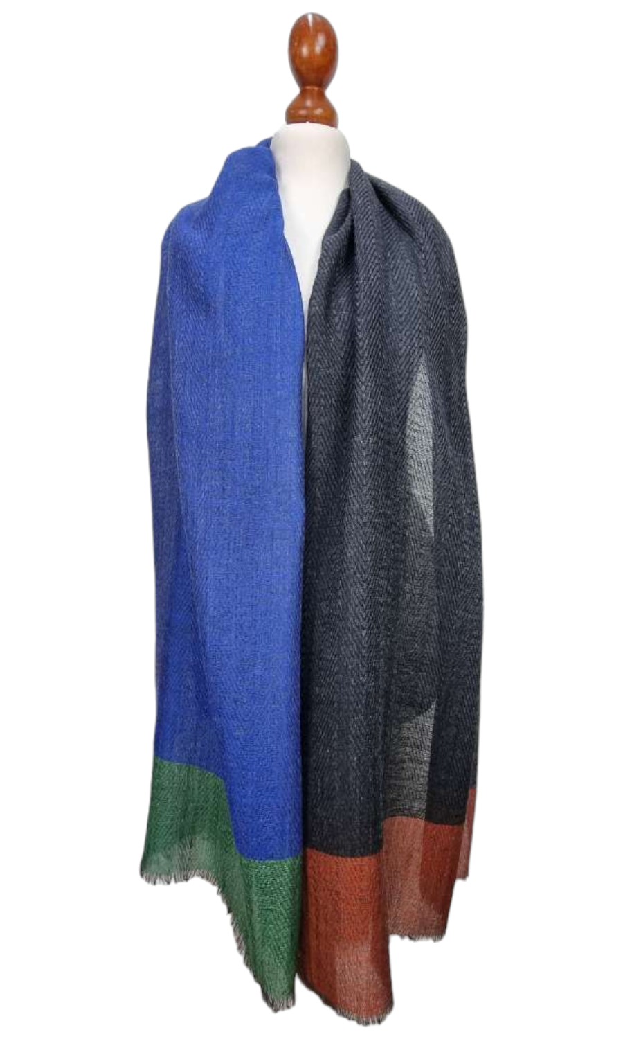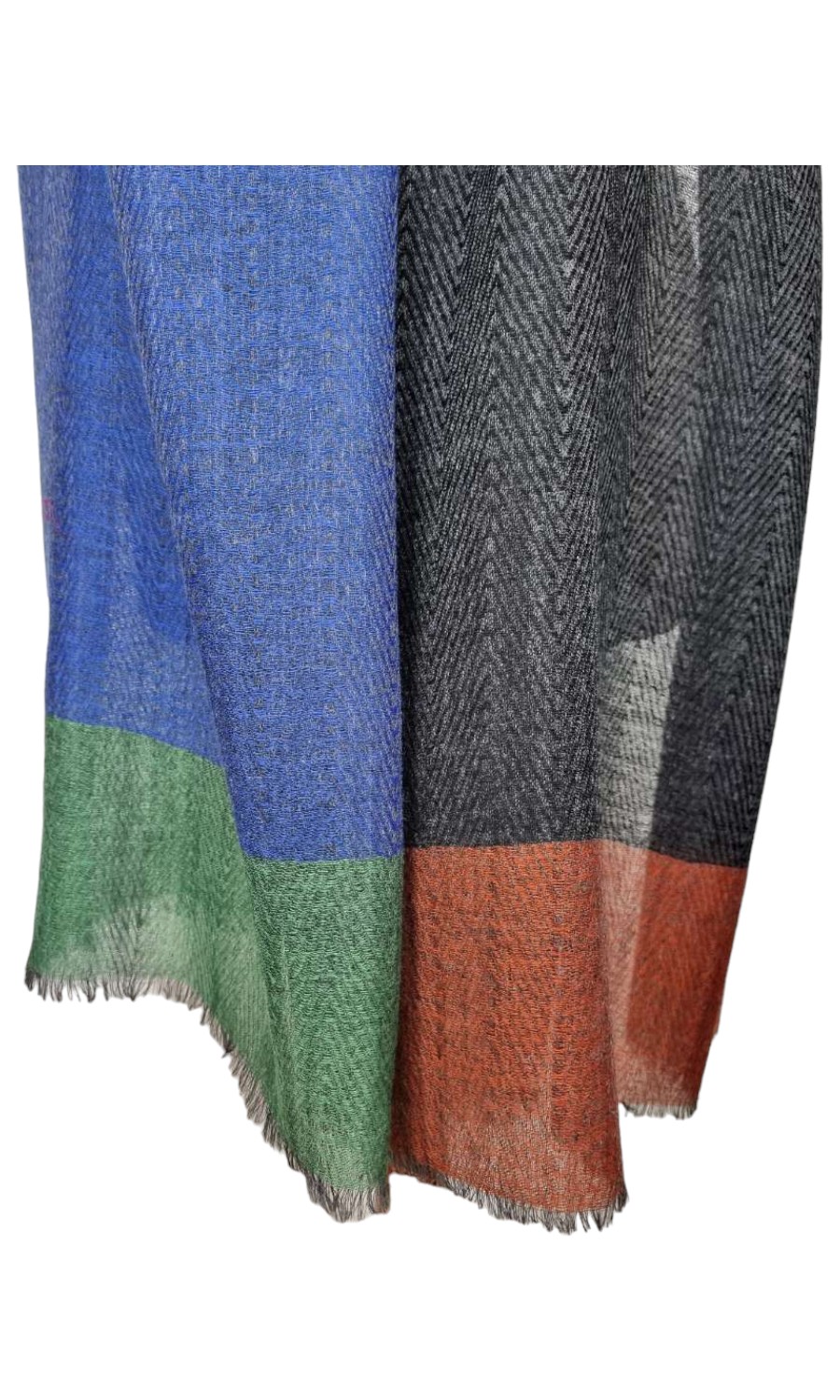 Dieser Schal wurde in Indien in einer kleinen Firma hergestellt und ist somit eine limitierte Besonderheit. Mit seiner Größe von 70cm x 190cm ist er bestens geeignet, um ihn vielseitig zu binden und zu tragen. Die feine Wolle ist hervorragend für kühlere Tage - auch an lauen Sommerabenden dient er als Jackenersatz, großflächig um die Schultern getragen. Mit einem Gewicht von nur 83g ist er der perfekte Begleiter im Alltag und verzaubert mit seinem klassisch eleganten Design.