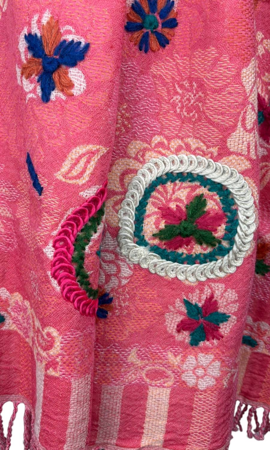 Der Schal ist durch seine Bestickung ein absolutes Unikat.