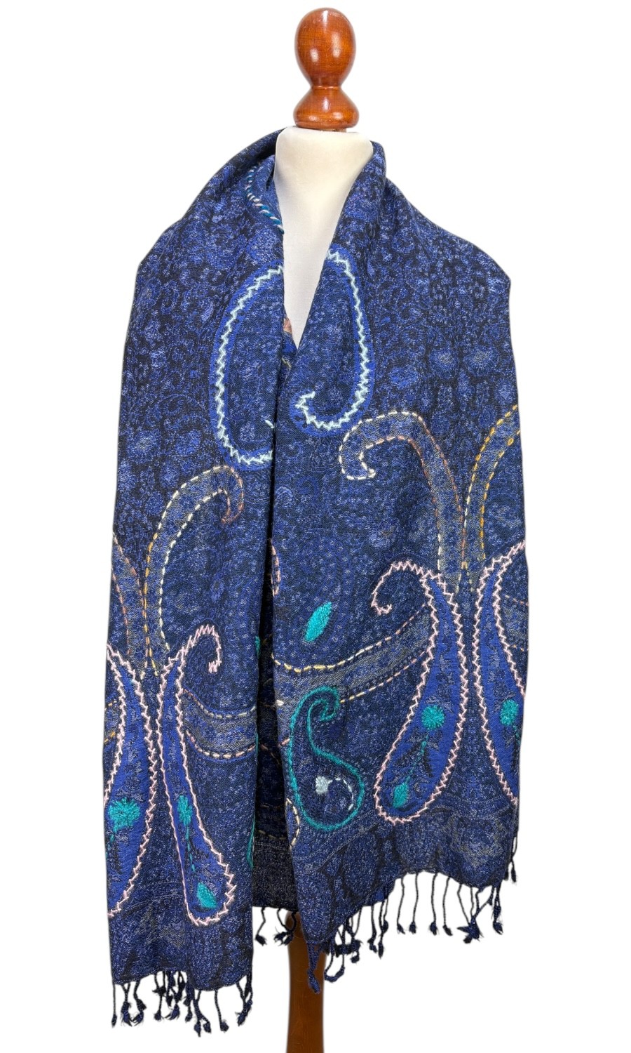 Der Schal ist durch seine Bestickung ein absolutes Unikat.
