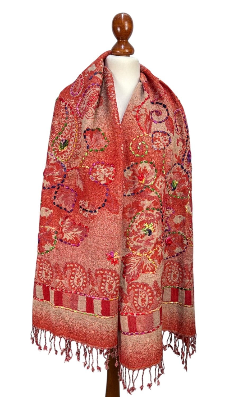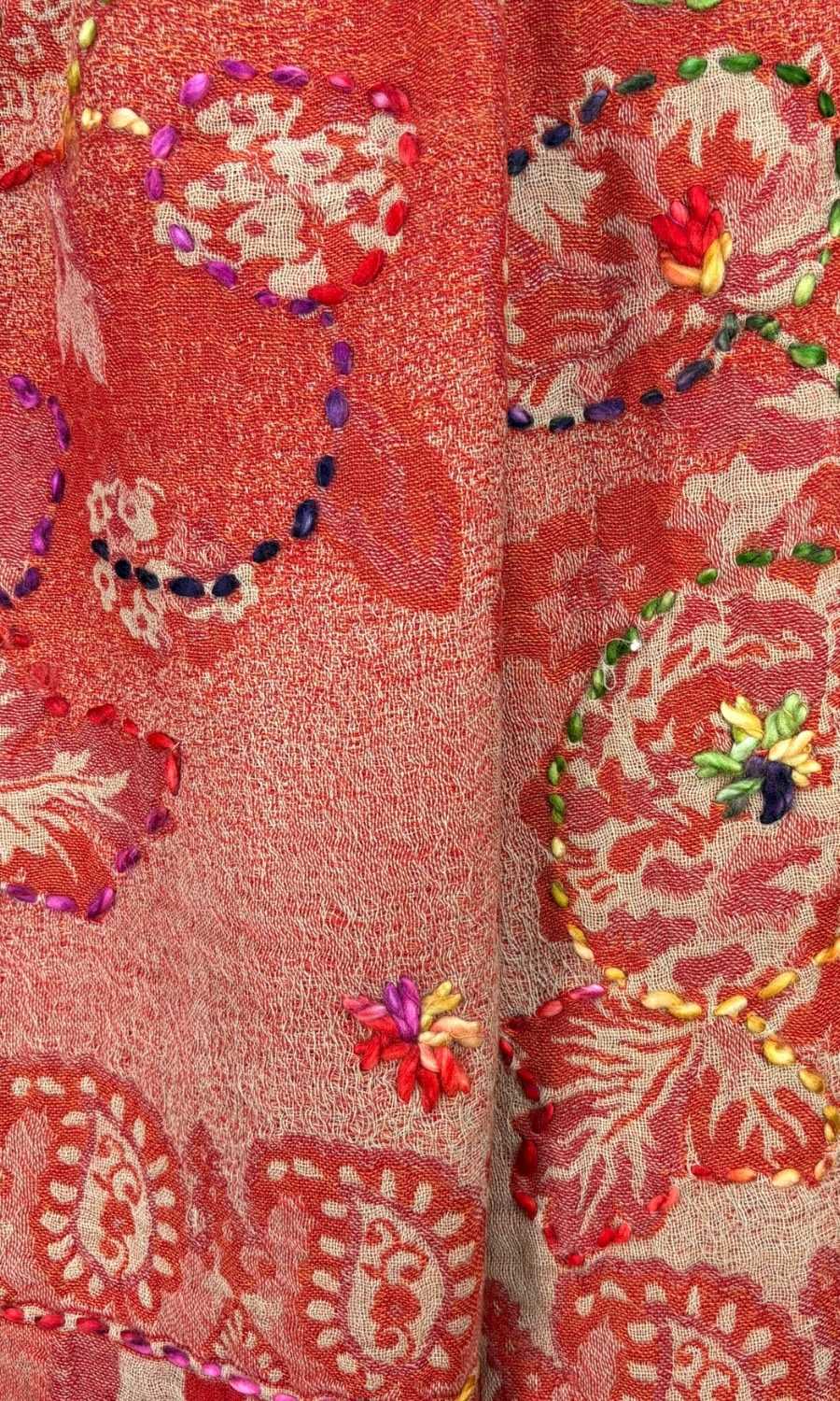 Der Schal ist durch seine Bestickung ein absolutes Unikat.