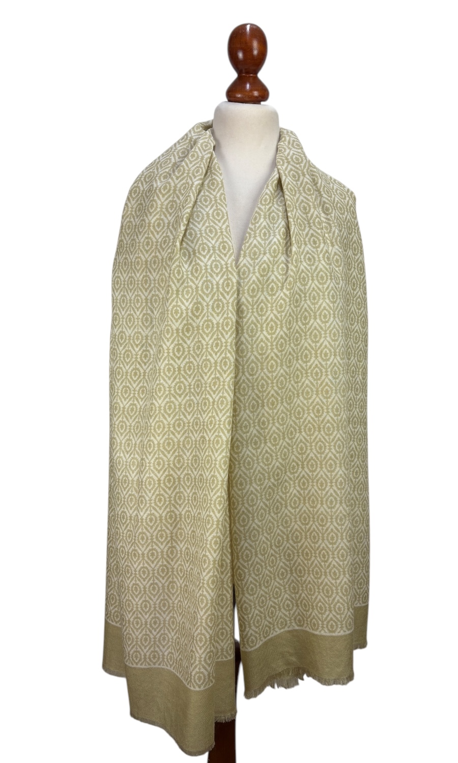 Hochwertig gefertigter Schal aus Merinowolle mit besonderem Webmuster.