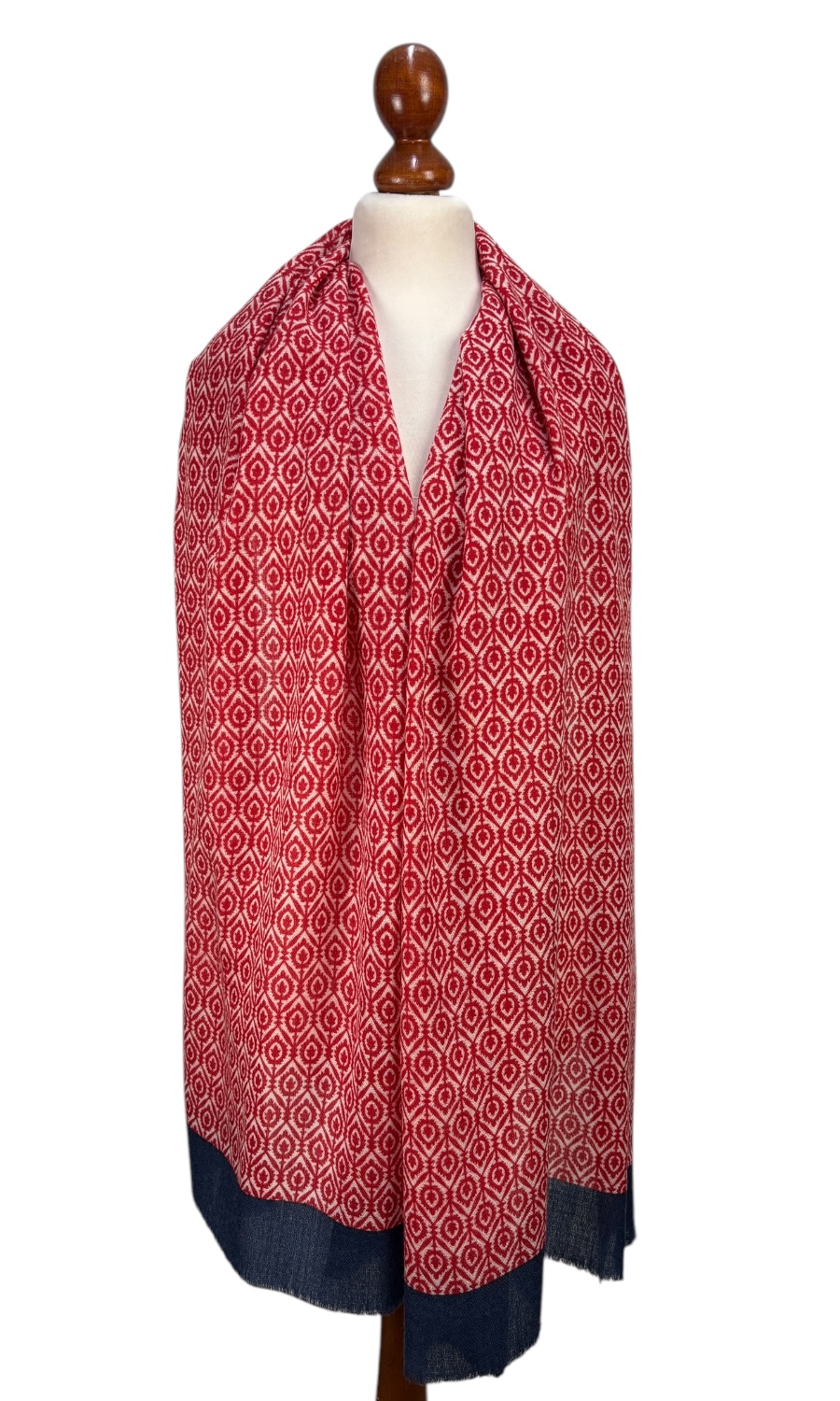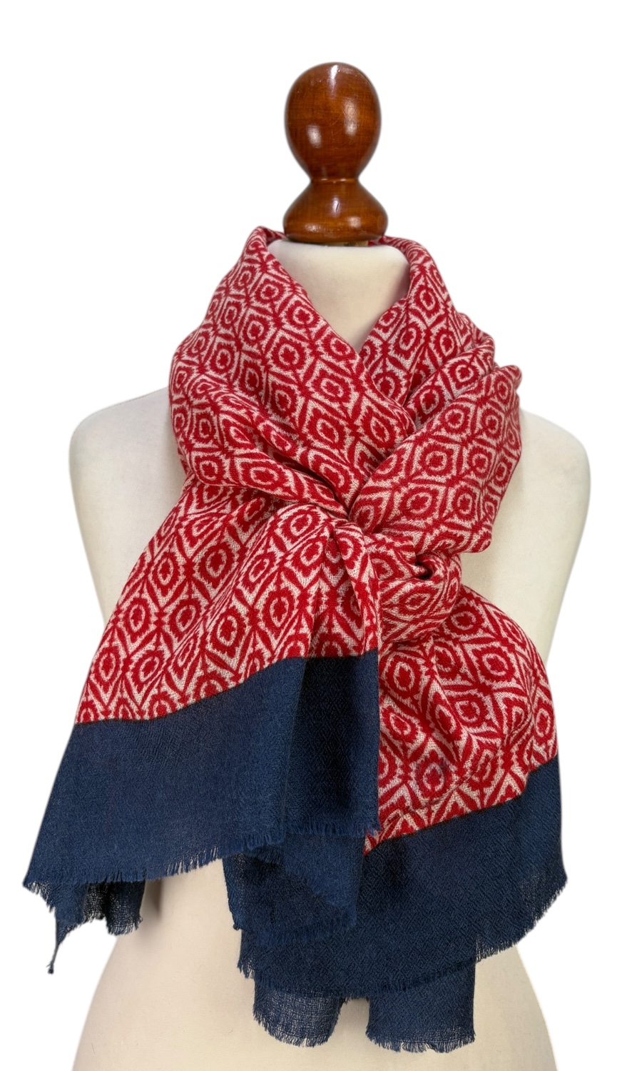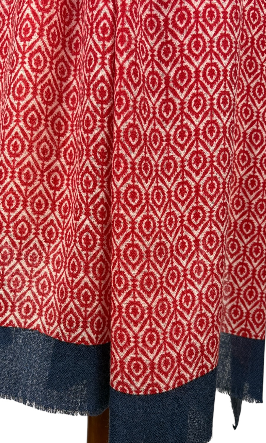 Hochwertig gefertigter Schal aus Merinowolle mit besonderem Webmuster.