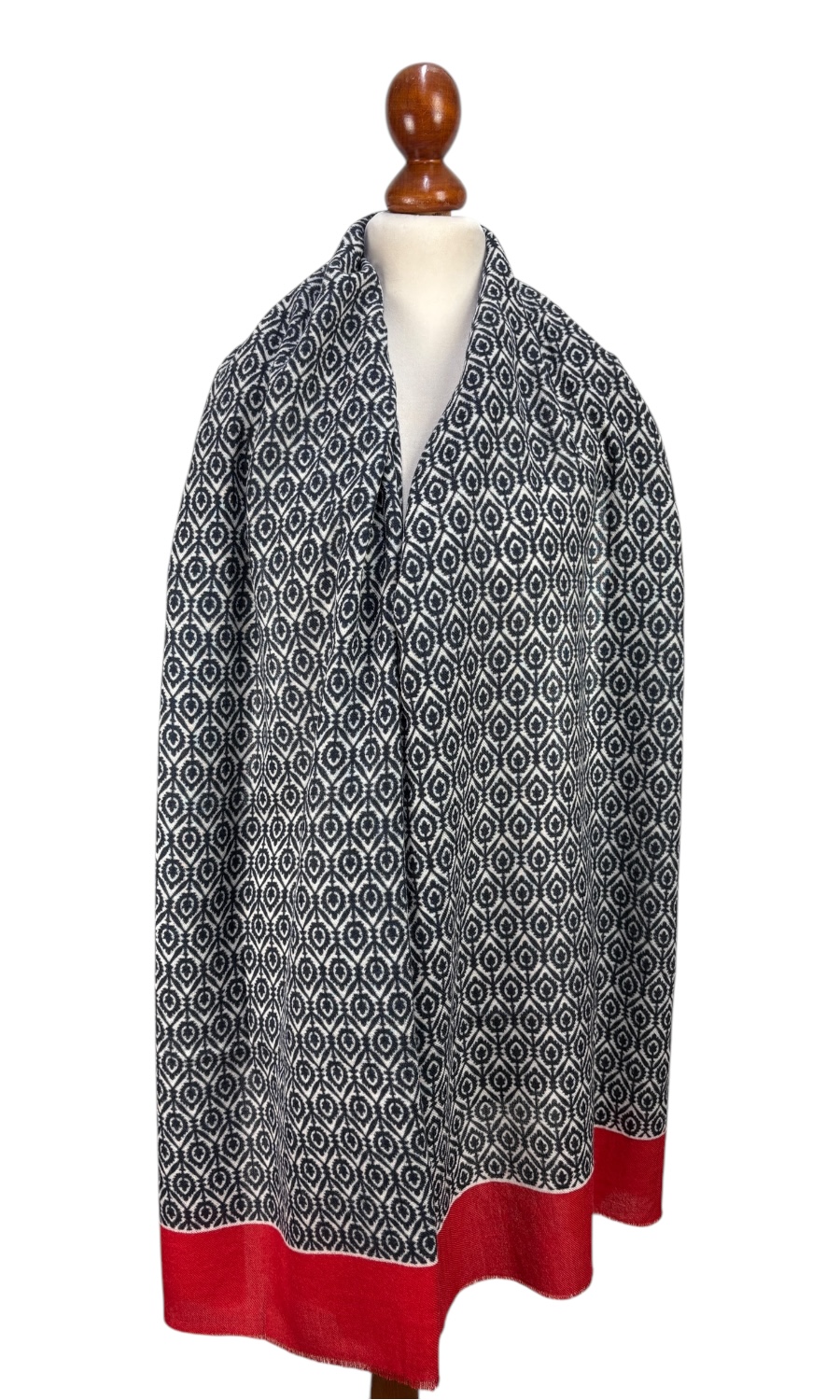 Hochwertig gefertigter Schal aus Merinowolle mit besonderem Webmuster.