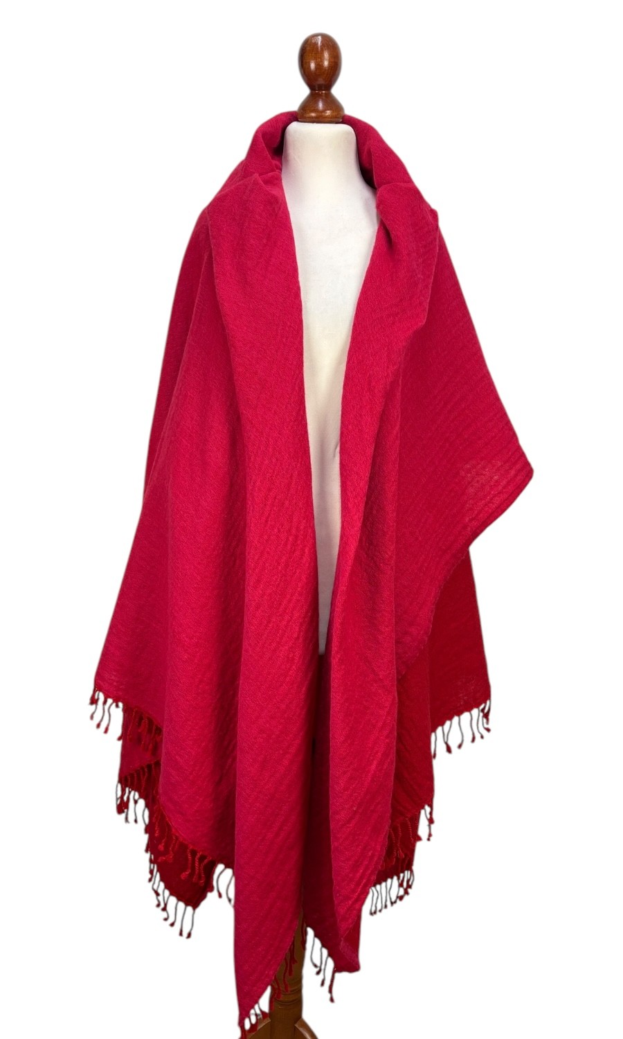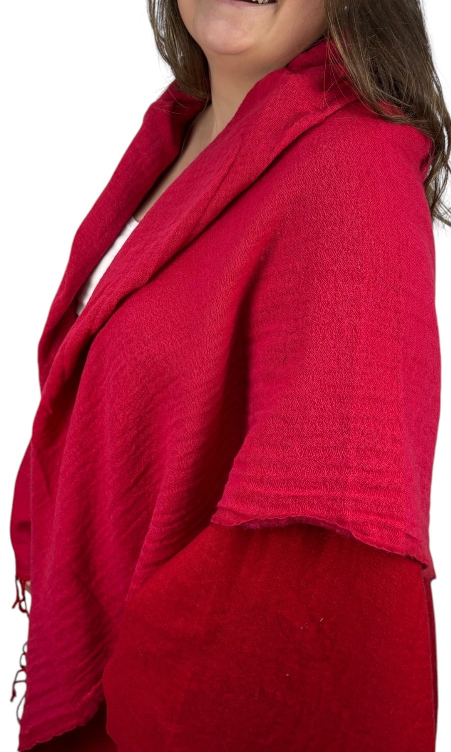 Mit einem Gewicht von 570 g bietet es perfekten Tragekomfort, ohne an Eleganz zu verlieren. Die großzügige Breite von 260 cm und die Länge von 1 m im Rückenbereich ermöglichen es, das Cape vielfältig zu drapieren und bieten dir sowohl Wärme als auch Bewegungsfreiheit. Das weiche, atmungsaktive Material der Merinowolle sorgt für ein angenehmes Tragegefühl und hält dich bei kühleren Temperaturen schön warm, während du gleichzeitig einen edlen, zeitlosen Look zur Schau stellst. Ob als stylisches Accessoire zu deinem Alltagsoutfit oder als Schutz an kühleren Tagen – dieses Cape ist der ideale Begleiter für die modebewusste Frau.