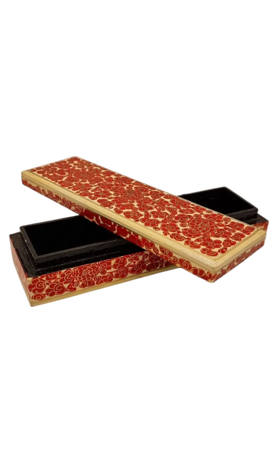 Unsere handbemalte Stiftebox aus Papermaché ist ein wunderschönes und einzigartiges Kunstwerk, das nicht nur als Aufbewahrungsdose für deine Schreibutensilien, sondern auch als dekoratives Element in deinem Zuhause dient. Jede Dose wird von talentierten Handwerkern mit feinsten Haarpinseln handbemalt, wodurch jedes Stück ein Unikat ist. Diese Box ist aus hochwertigem Papermaché gefertigt, was sie leicht und dennoch robust macht. Die handgemalten Designs reichen von Paisley-Mustern bis hin zu floralen Motiven und bringen Farbe und Leben in jeden Raum. Die Box eignet sich perfekt zur Aufbewahrung von Stiften, Schmuck, kleinen Gegenständen oder als Geschenkverpackung für besondere Anlässe.