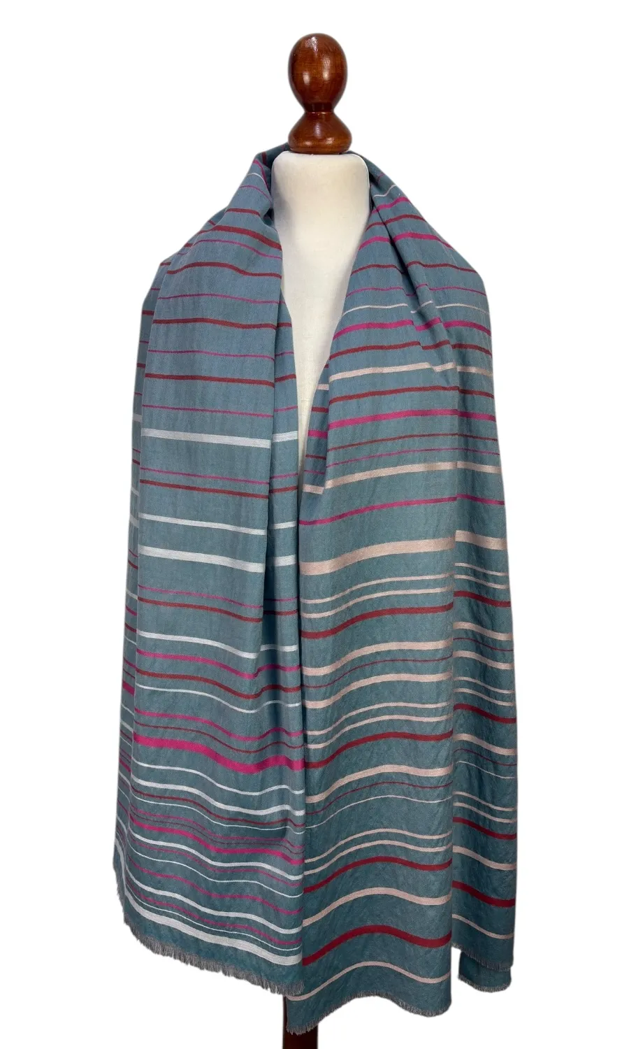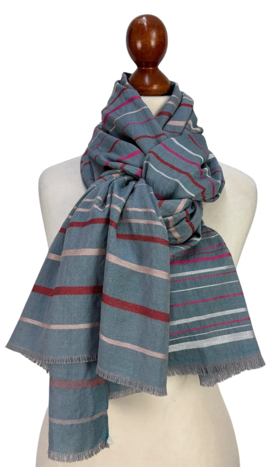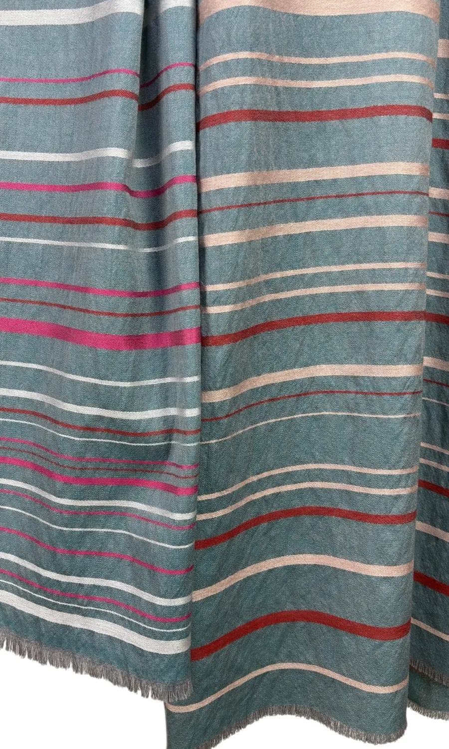 Er wurde in einer kleinen Firma in Indien gefertigt und ist somit eine limitierte Besonderheit. Mit seiner Größe von ca. 70cm x 190cm lässt er sich vielseitig binden und ist für jeden Anlass der perfekte Begleiter. Der Schal ist durch sein elegantes Streifenmuster zeitlos und somit DAS Accessoire zu deinem Outfit. Mit einem Gewicht von nur ca. 170g ist er federleicht und schenkt dir wohlige Wärme.