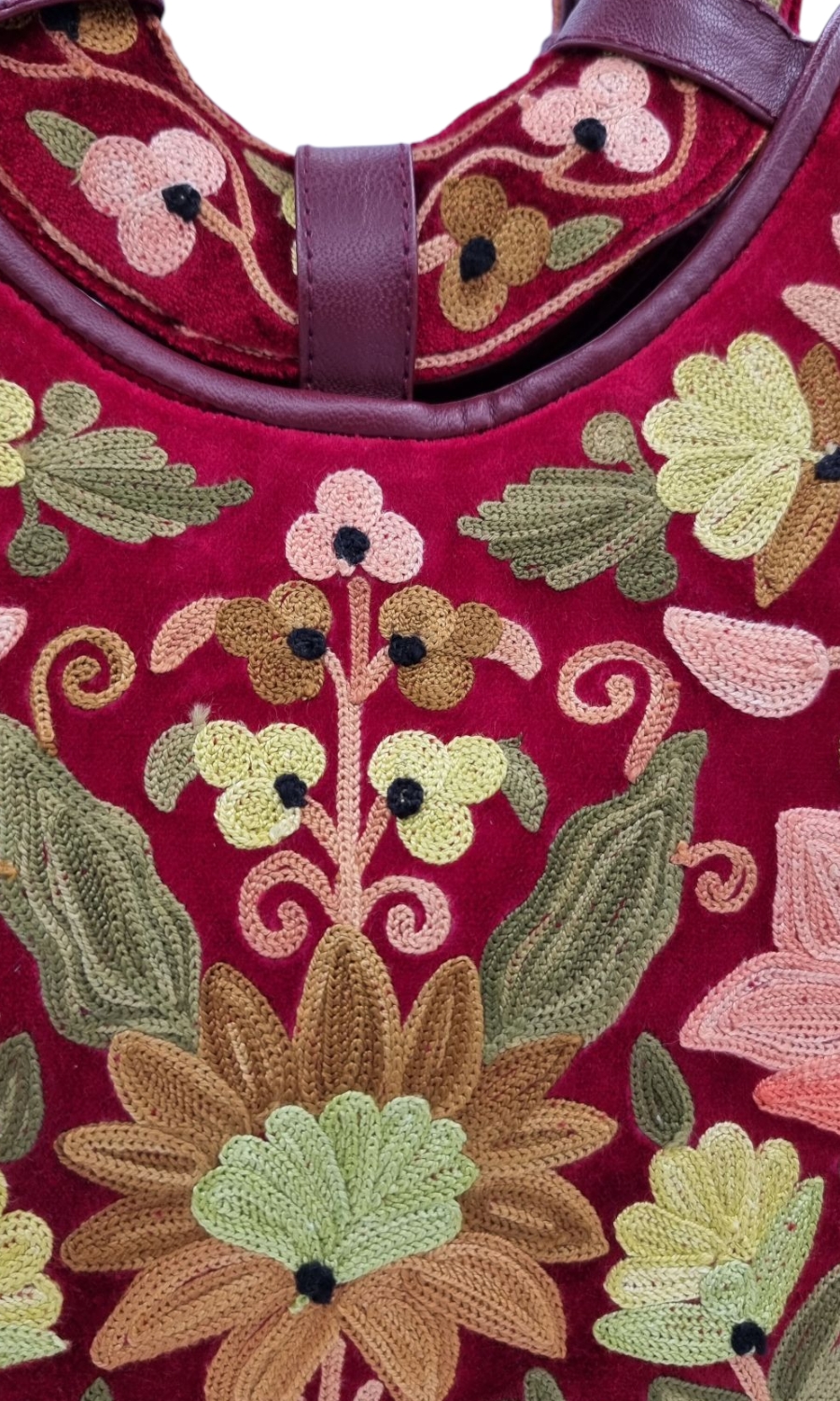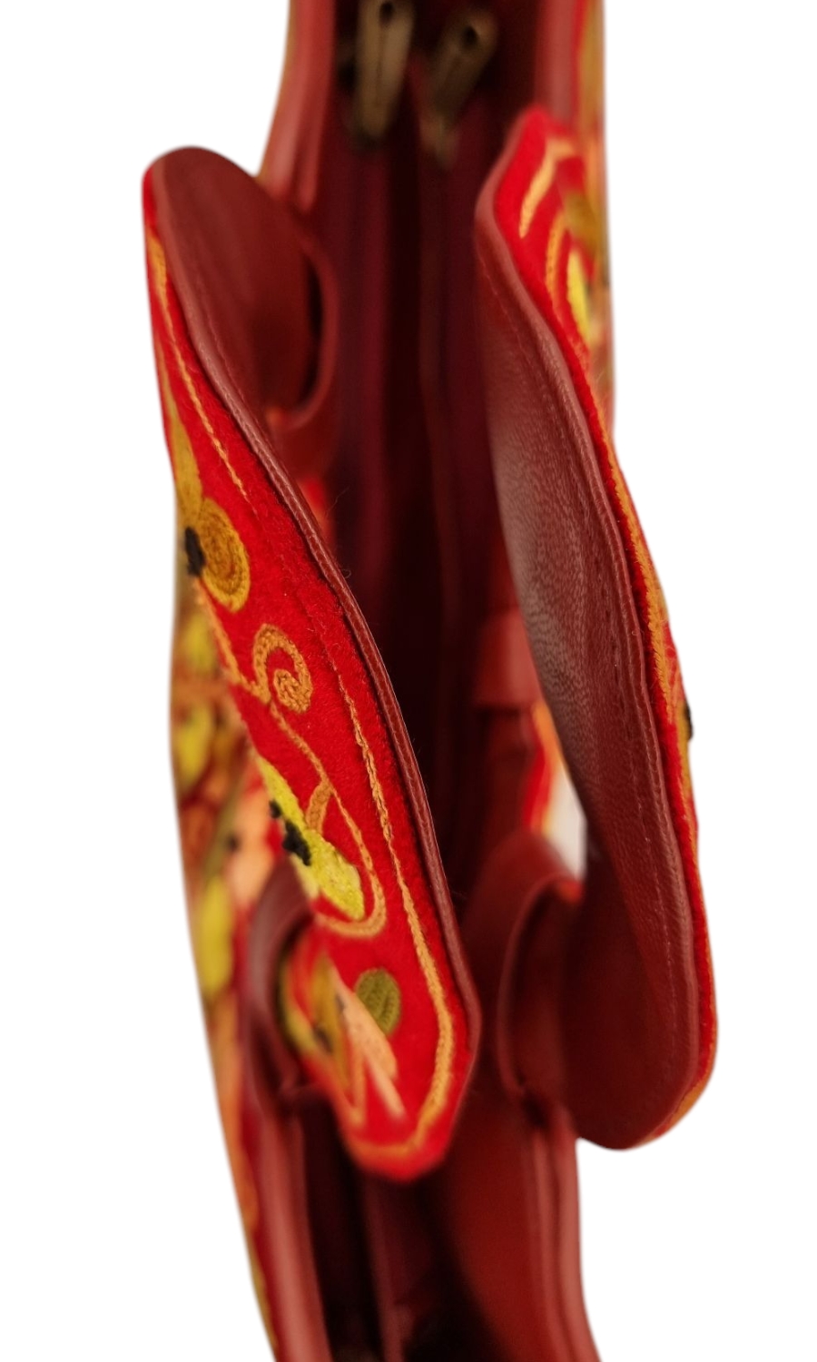 Diese Tasche ist ein echtes Unikat - die maschinell gefertigte,filigrane Bestickung verleiht ihr einen individuellen, eleganten Charakter. Die leuchtenden Farben und edlen Materialien machen sie zu einem absoluten Hingucker und einem absoluten Must-Have!