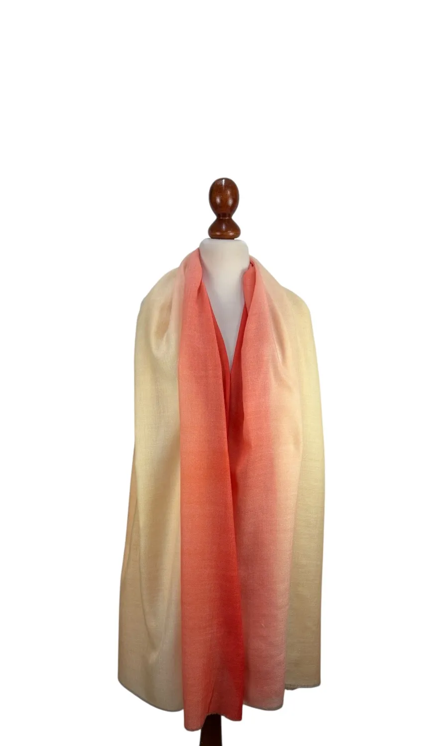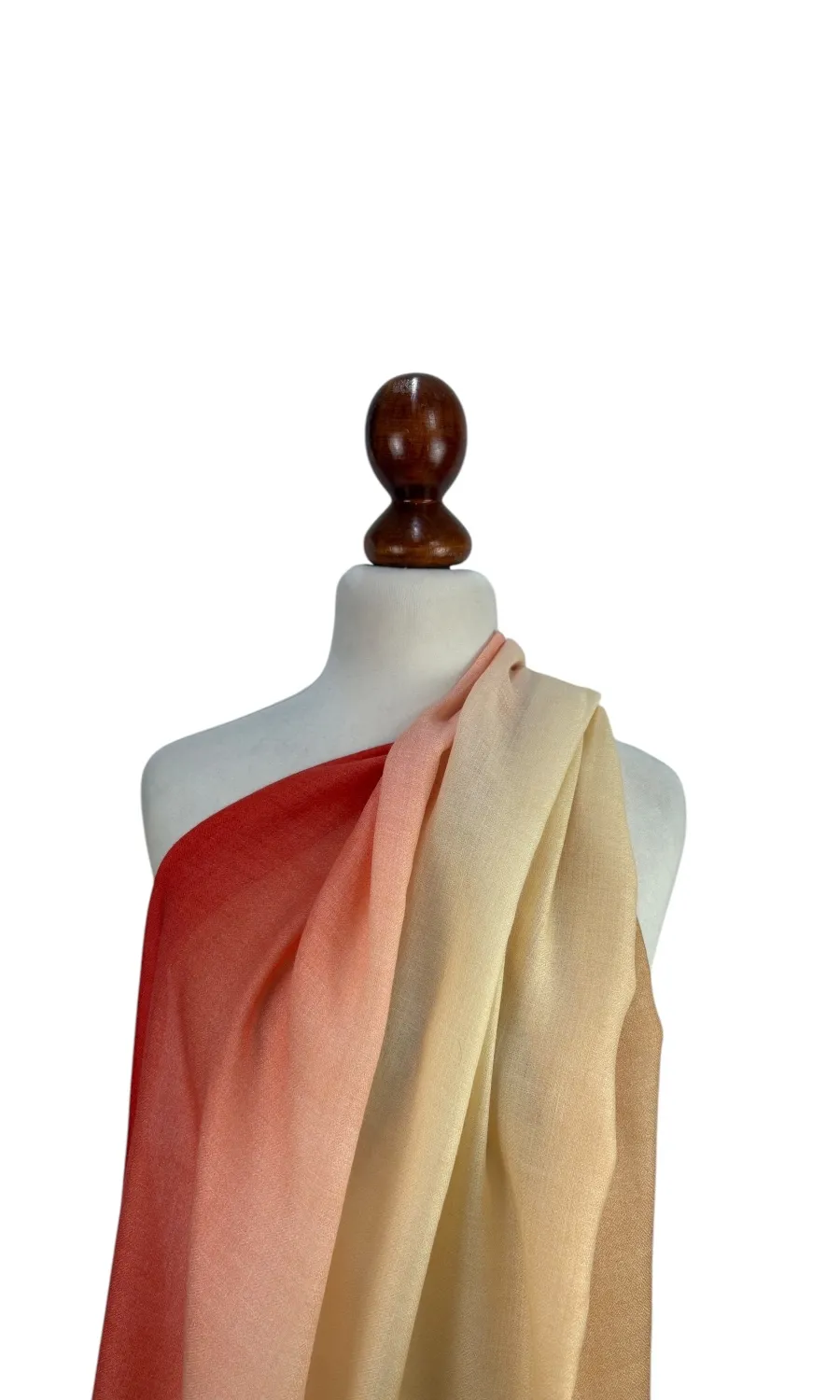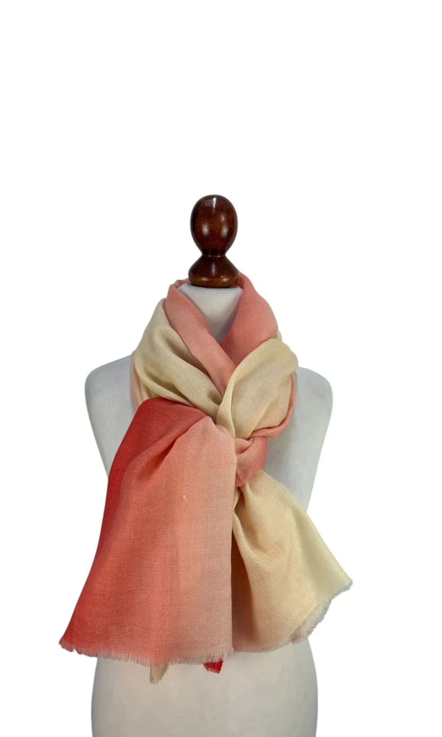 Der charakteristische Farbverlauf verleiht deinem Outfit eine dynamische und raffinierte Note. Ganz gleich, ob du ihn um den Hals trägst oder über die Schultern legst - dieser Schal verleiht deinem Look eine elegante Finesse. Mit einem Gewicht von nur 100g ist dieser Kaschmirschal leicht und dennoch wärmend. Er eignet sich perfekt für Übergangszeiten oder kühle Sommerabende.