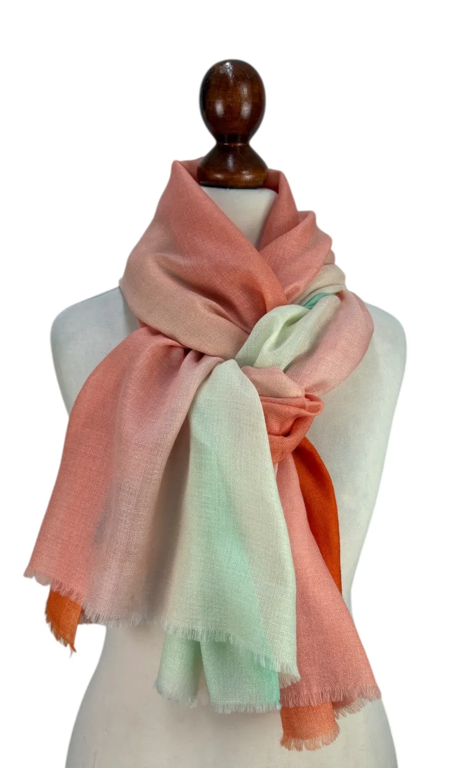 Der charakteristische Farbverlauf verleiht deinem Outfit eine dynamische und raffinierte Note. Ganz gleich, ob du ihn um den Hals trägst oder über die Schultern legst - dieser Schal verleiht deinem Look eine elegante Finesse. Mit einem Gewicht von nur 100g ist dieser Kaschmirschal leicht und dennoch wärmend. Er eignet sich perfekt für Übergangszeiten oder kühle Sommerabende.