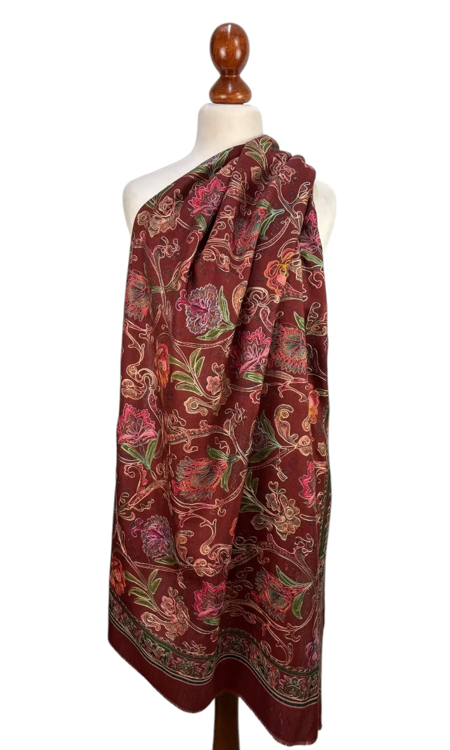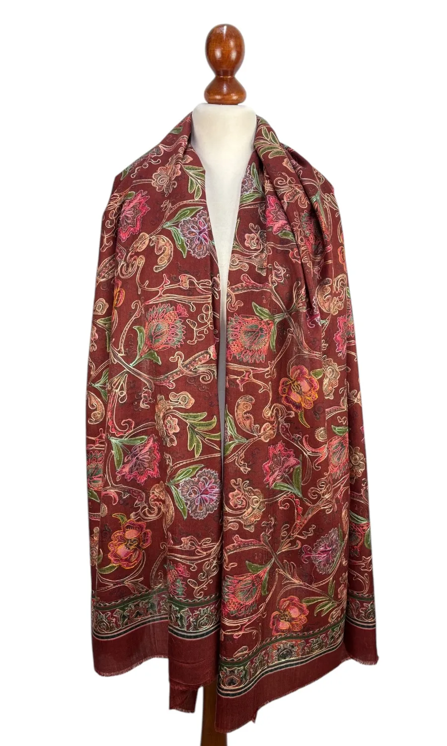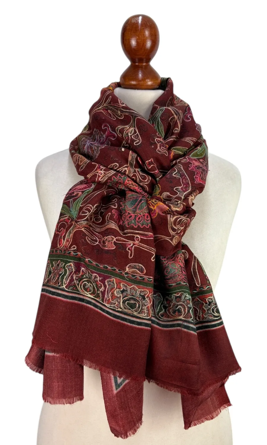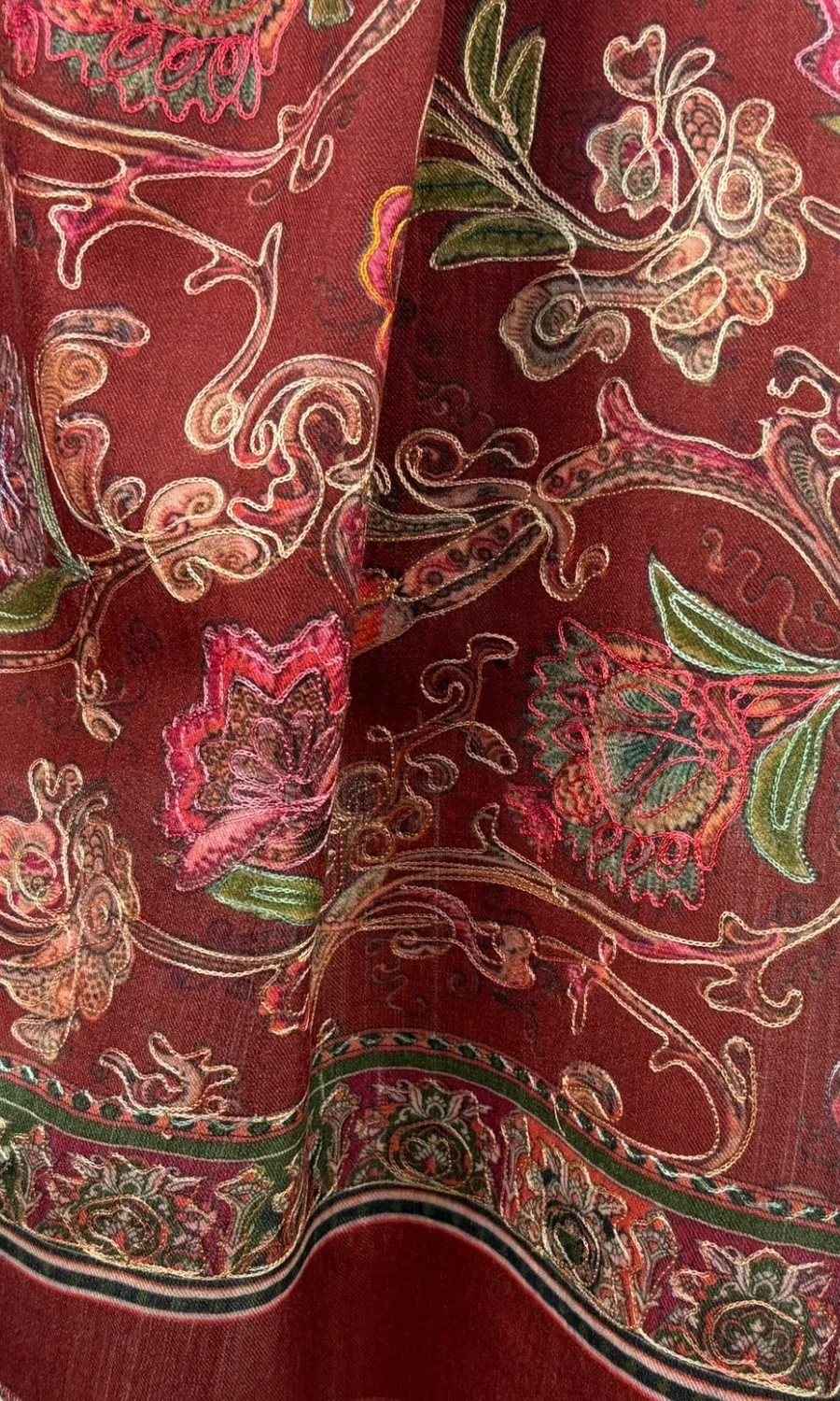 Stilvoller Schal aus edler Wolle / Seide - Mischung mit toller Seidenbestickung.
