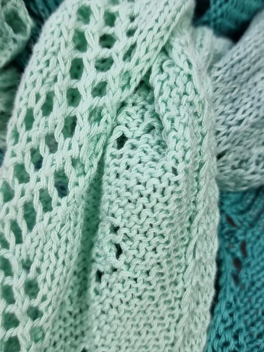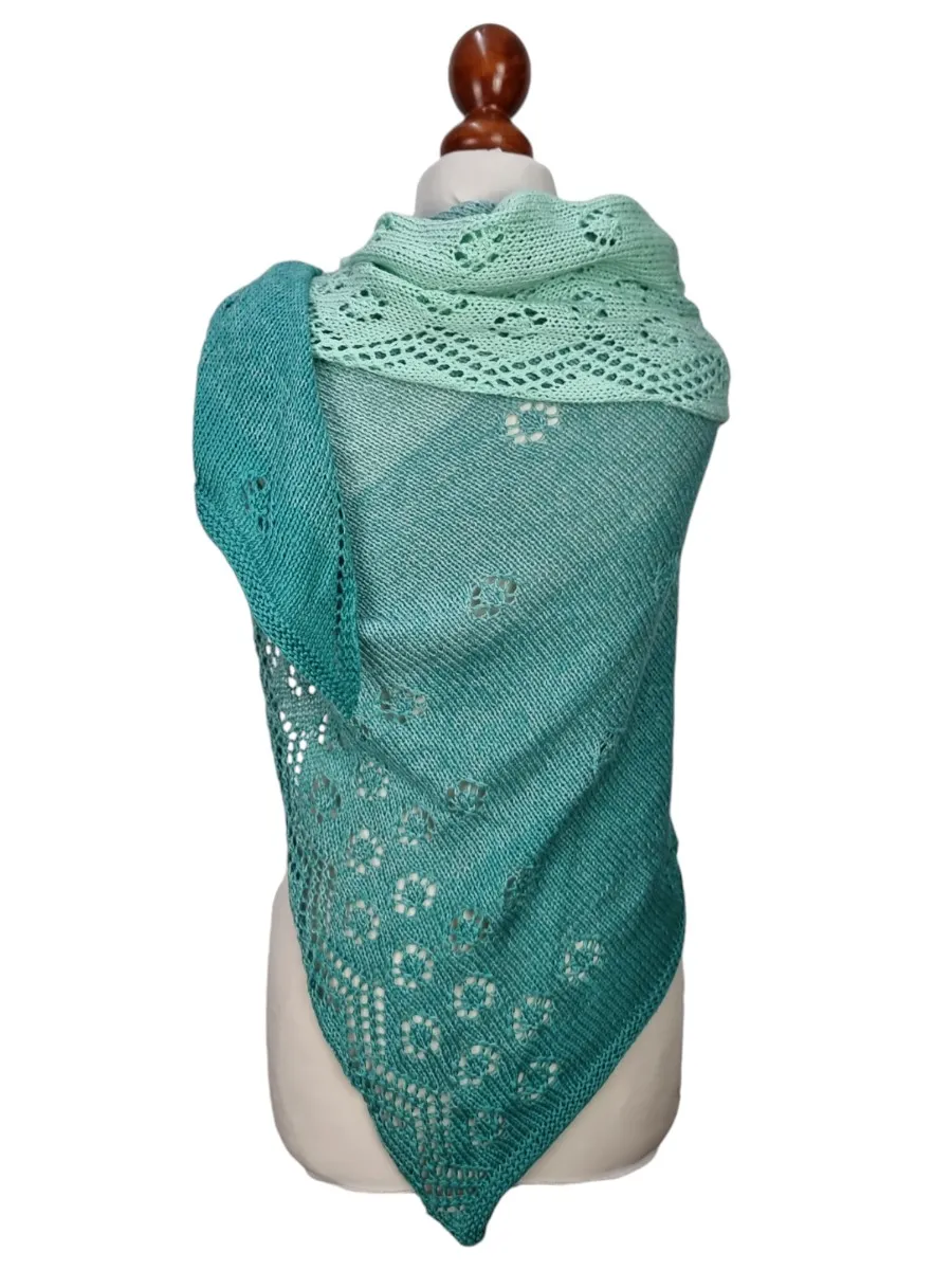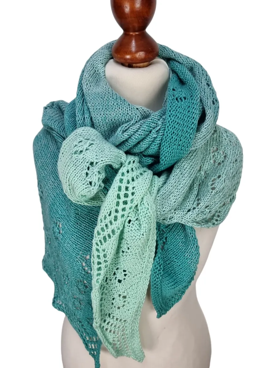 Handgestricktes Dreieckstuch aus Merinowolle & Baumwolle – in harmonischen Blautönen