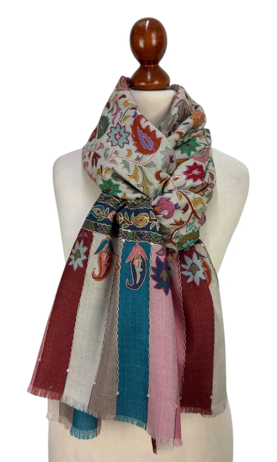 Stilvoller Schal aus edler Merinowolle mit toller Seidenbestickung.