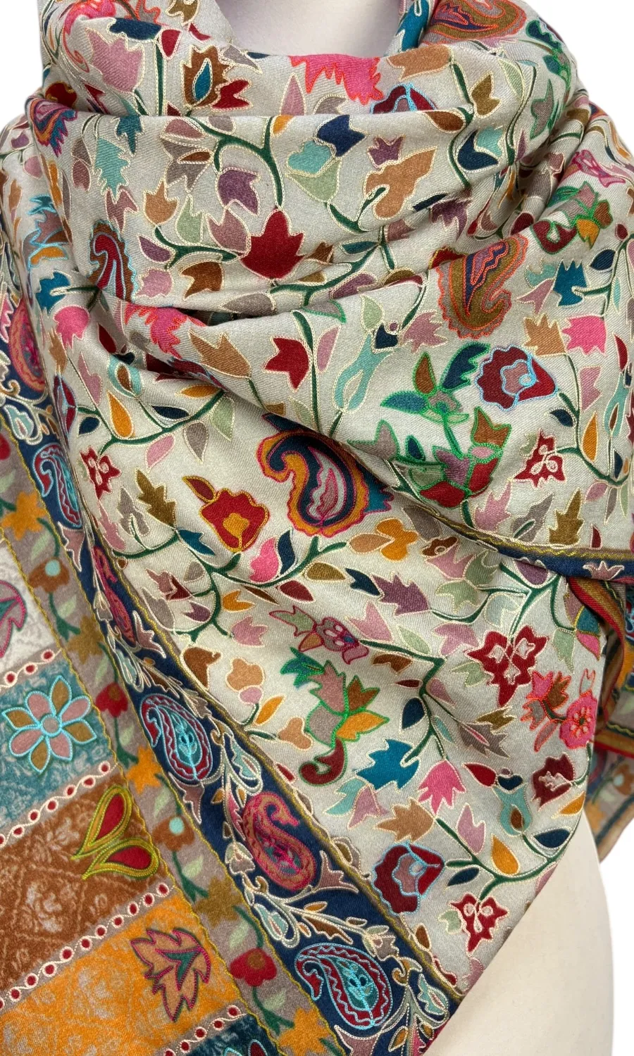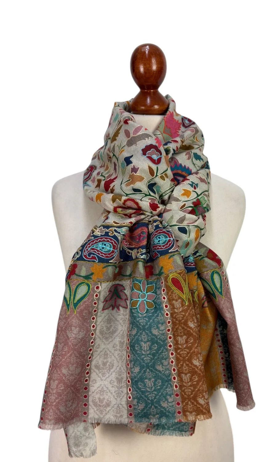 Stilvoller Schal aus edler Merinowolle mit toller Seidenbestickung.