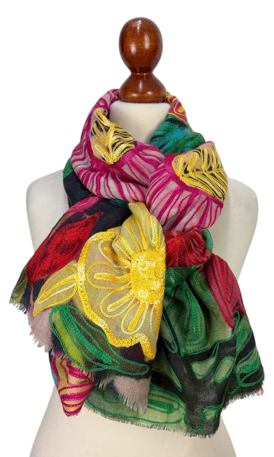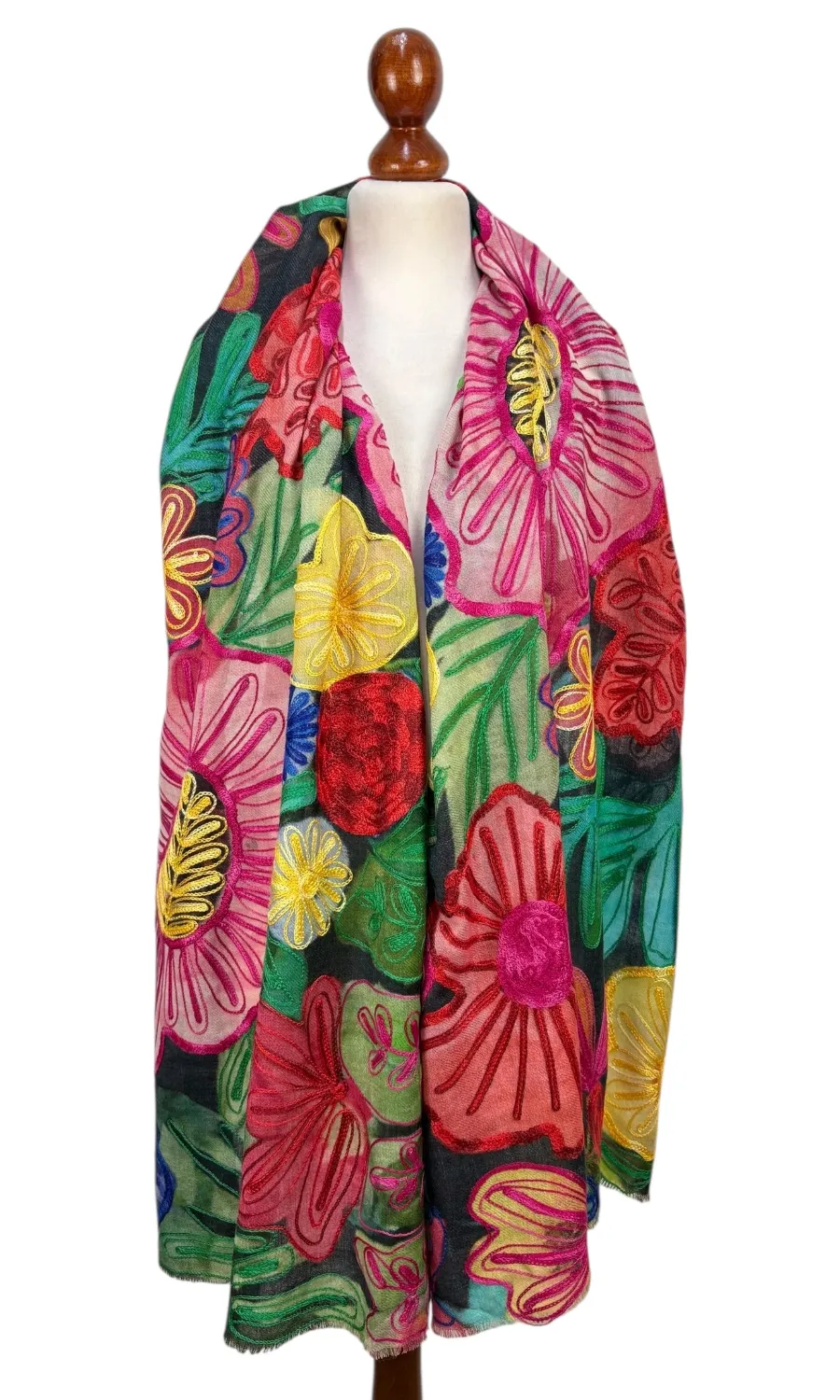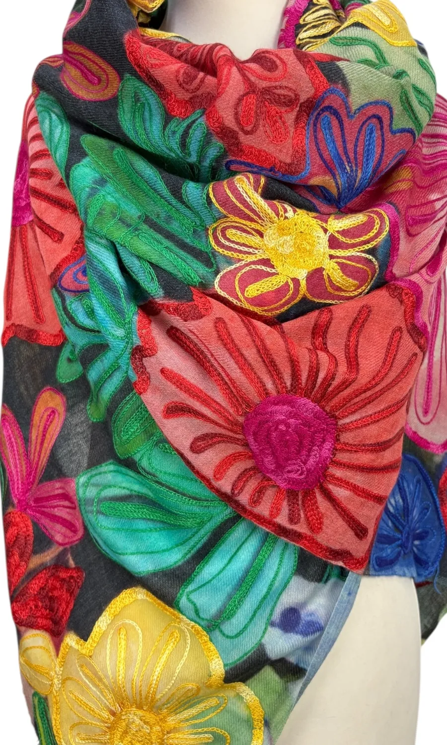Produktinformationen "Mohini - großer bestickter Merinoschal "
