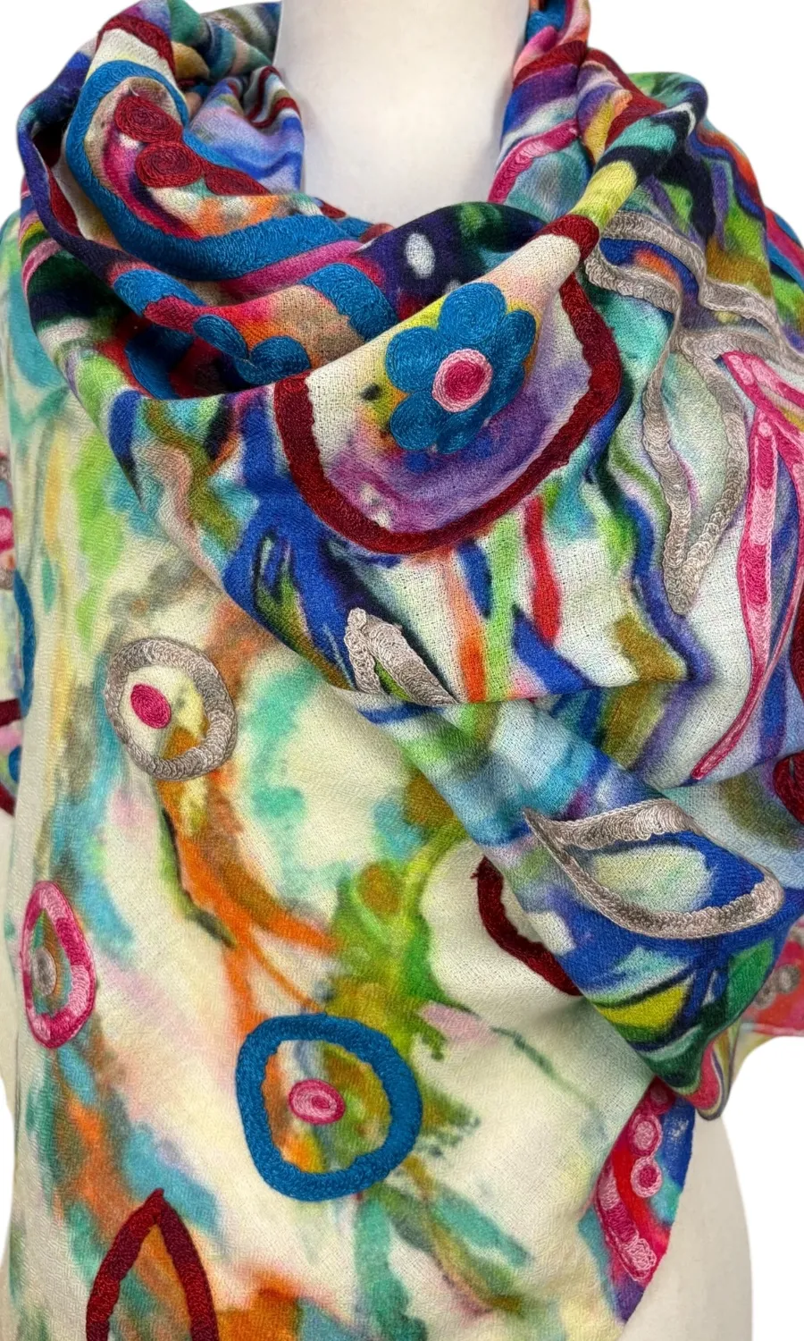 Produktinformationen "Mohini - großer bestickter Merinoschal "