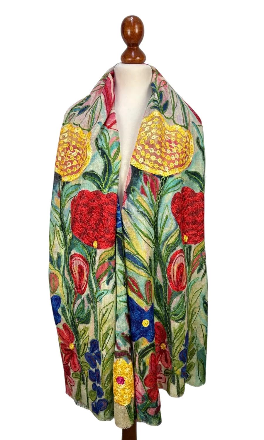Produktinformationen "Mohini - großer bestickter Merinoschal "