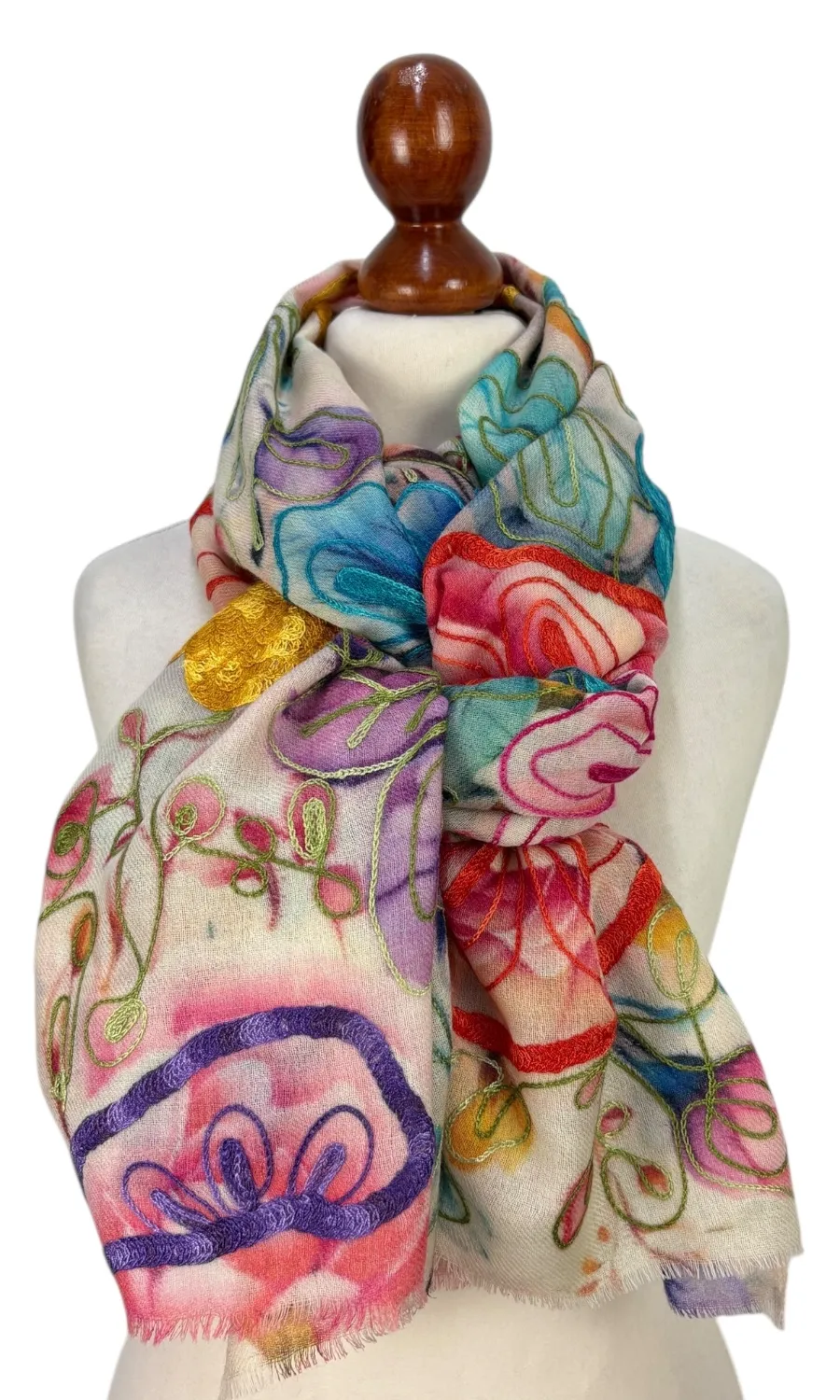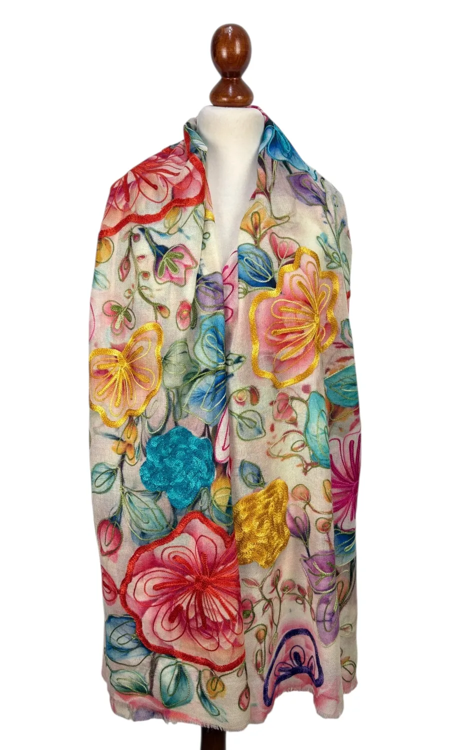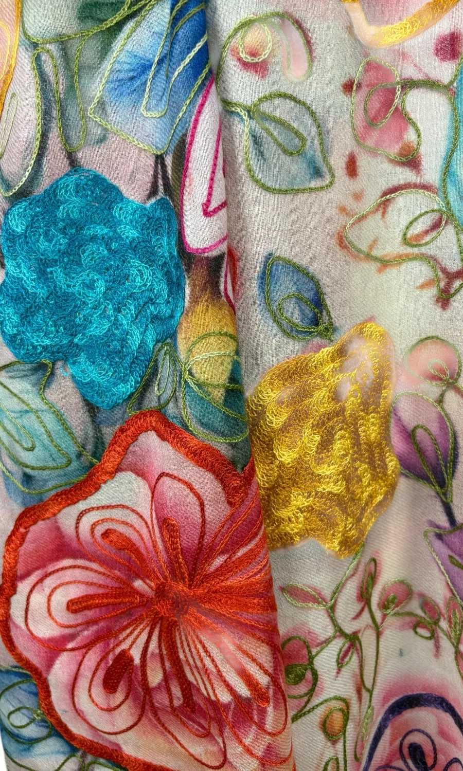Produktinformationen "Mohini - großer bestickter Merinoschal "