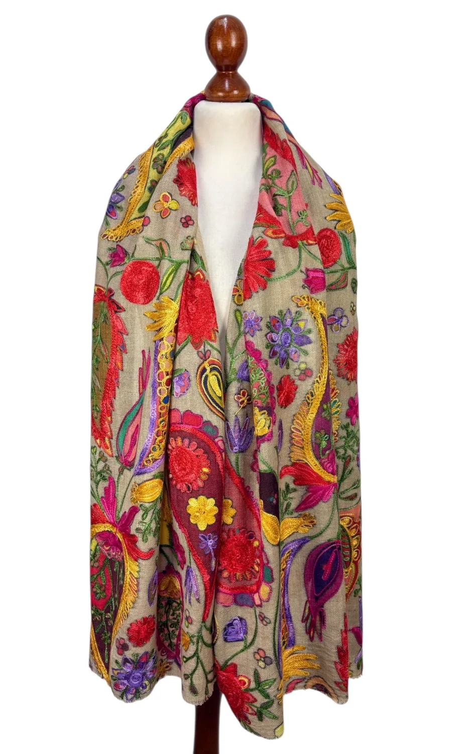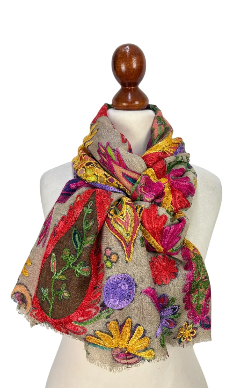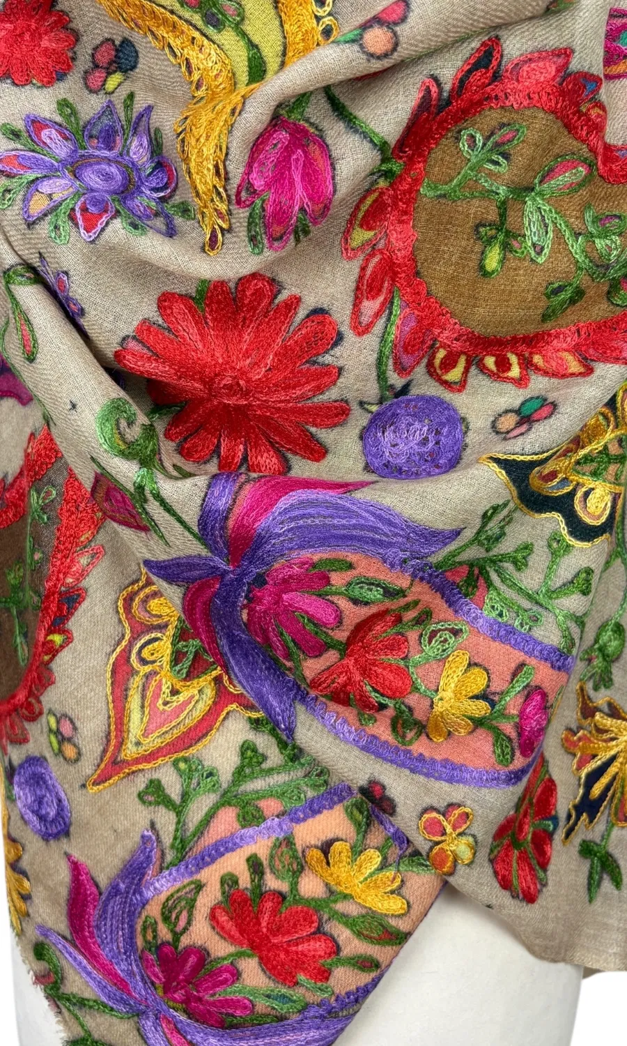 Produktinformationen "Mohini - großer bestickter Merinoschal "