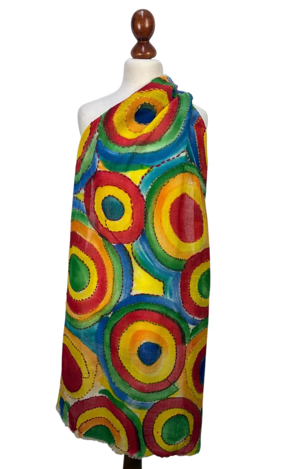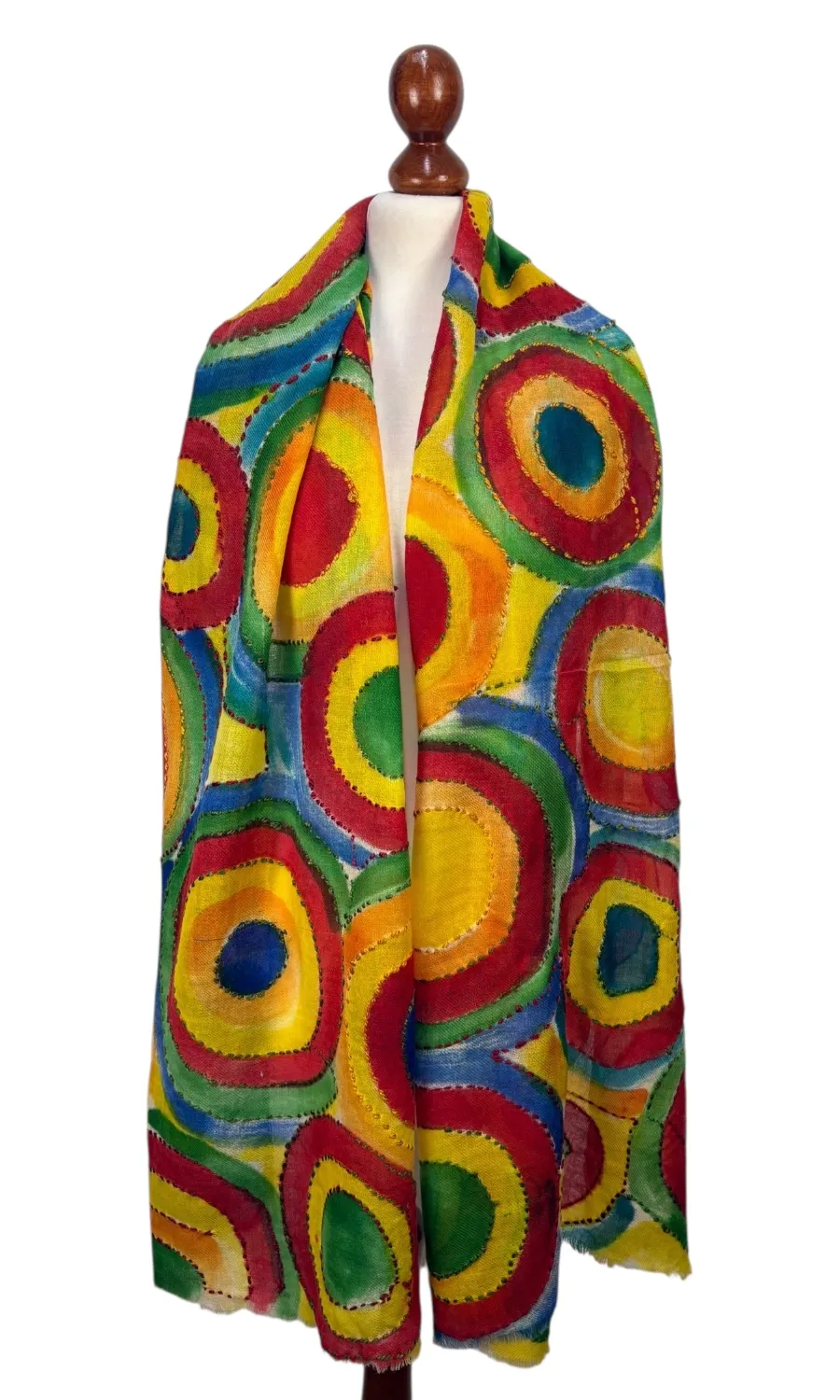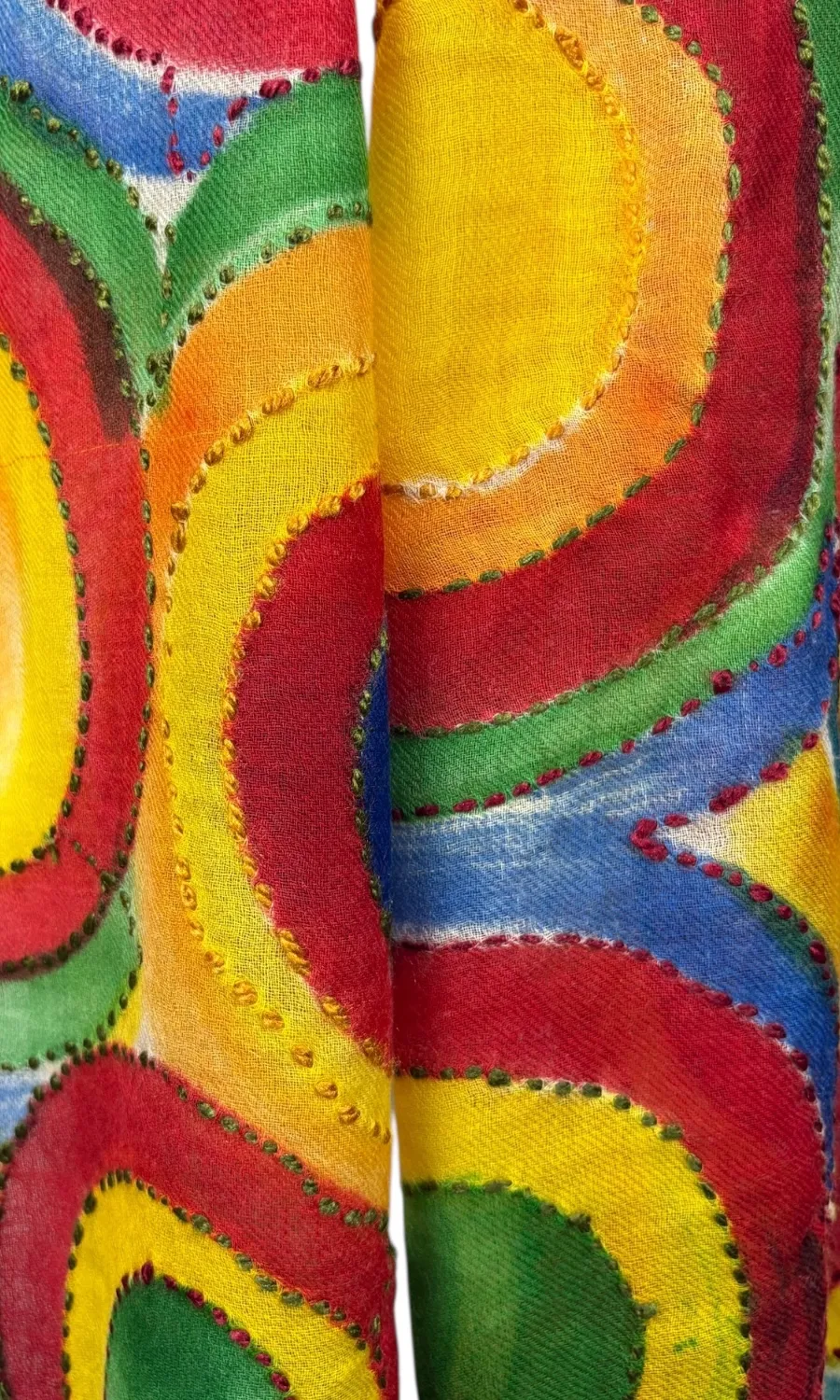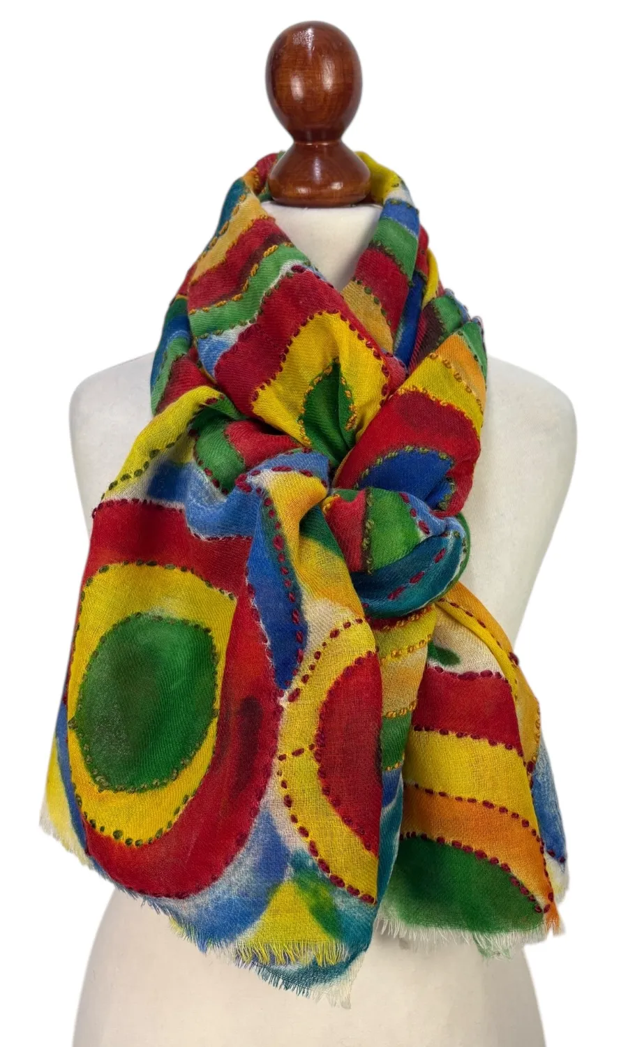 Stilvoller, bemalter Schal aus feiner Merinowolle.