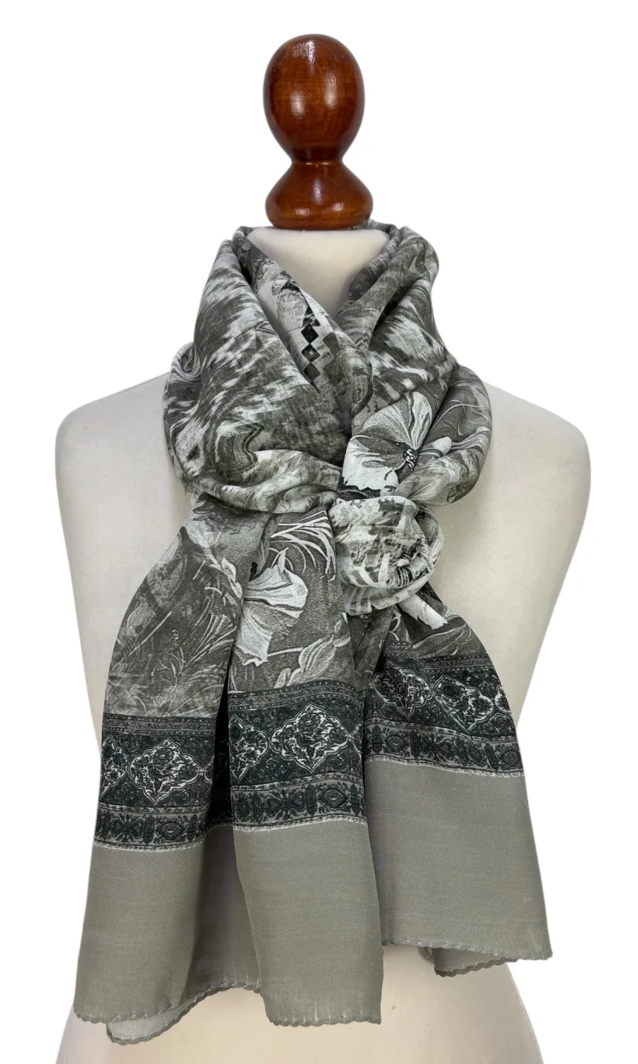 Hochwertig gefertigter Schal aus feiner Seide mit einzigartigem Muster.