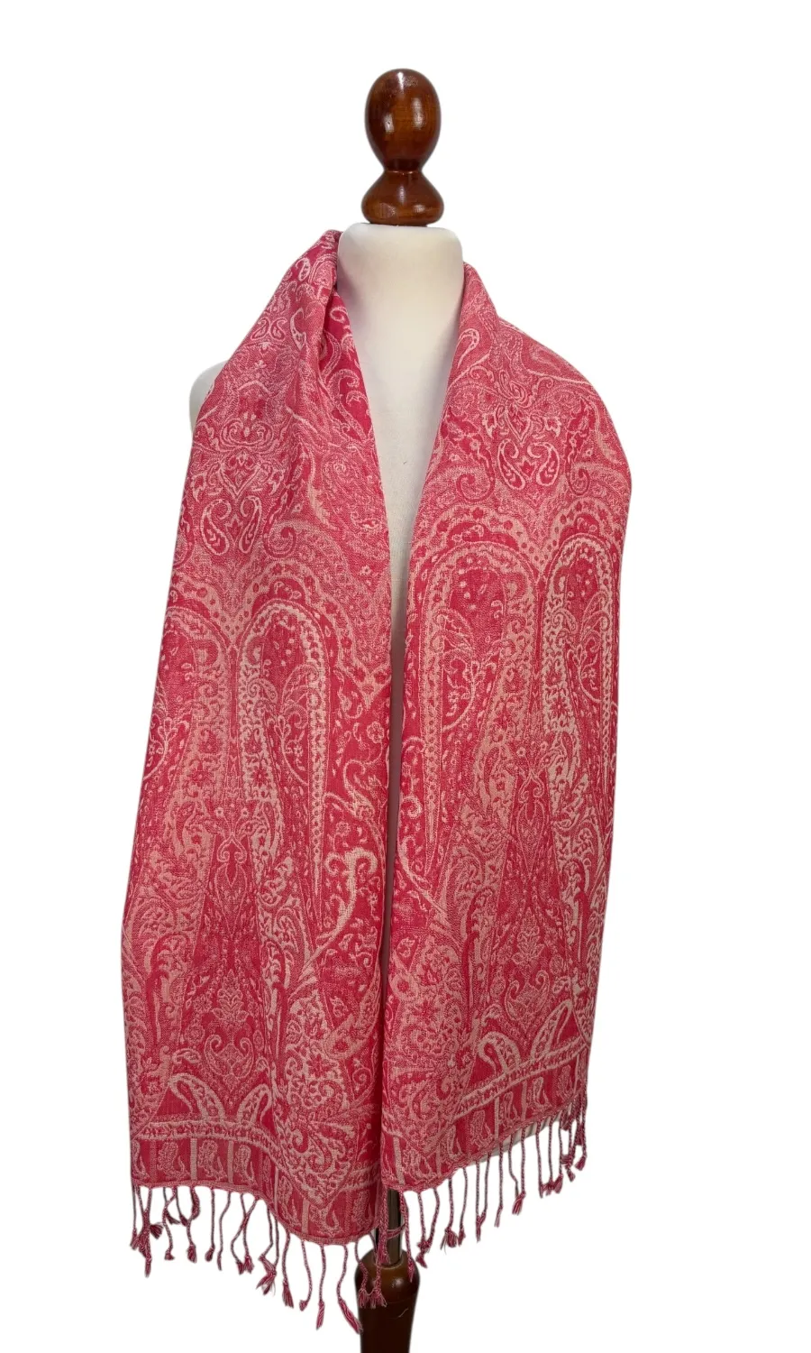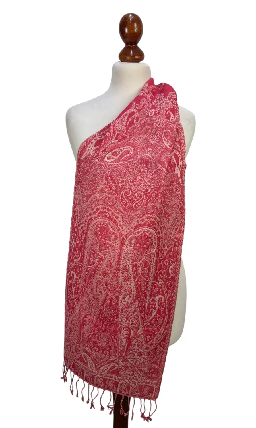 Dieser wunderschöne Schal wurde in einem kleinen Betrieb in der Region Kaschmir (Indien) gefertigt und ist eine limitierte Kollektion. Mit seiner Größe von ca. 35 cm x 160 cm lässt er sich vielseitig binden und ist für das perfekte Accessoire für eine Jacke, Pullover oder Bluse. Durch seine doppelte Webung hat der Schal zwei unterschiedliche Seiten, die sich in der Farbgebung leicht voneinander unterscheiden. Mit einem Gewicht von nur ca. 140g ist er federleicht an deinem Hals und schenkt dir wohlige Wärme.