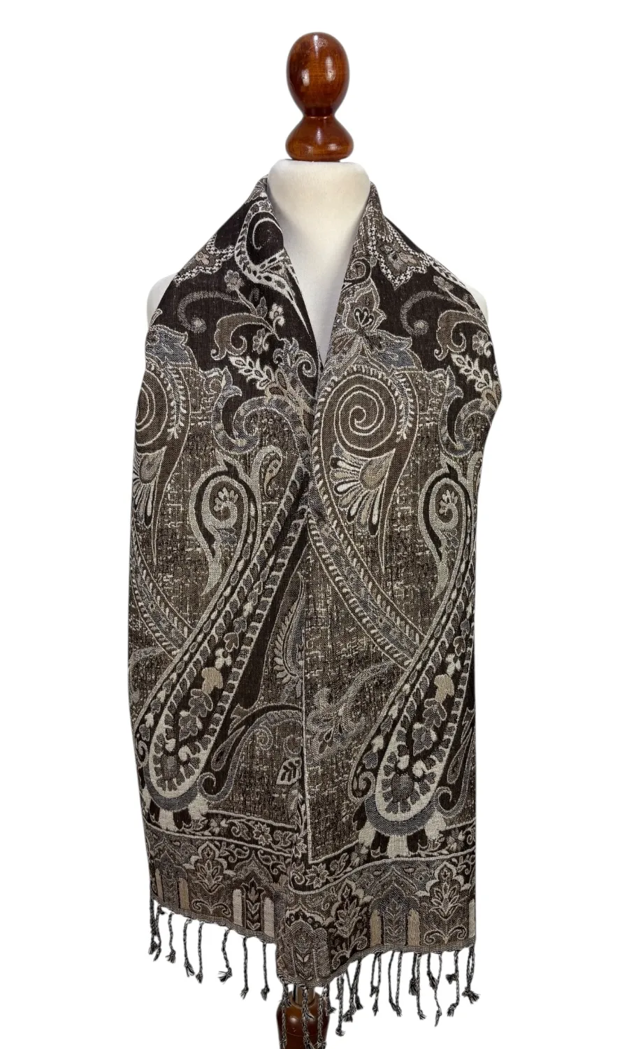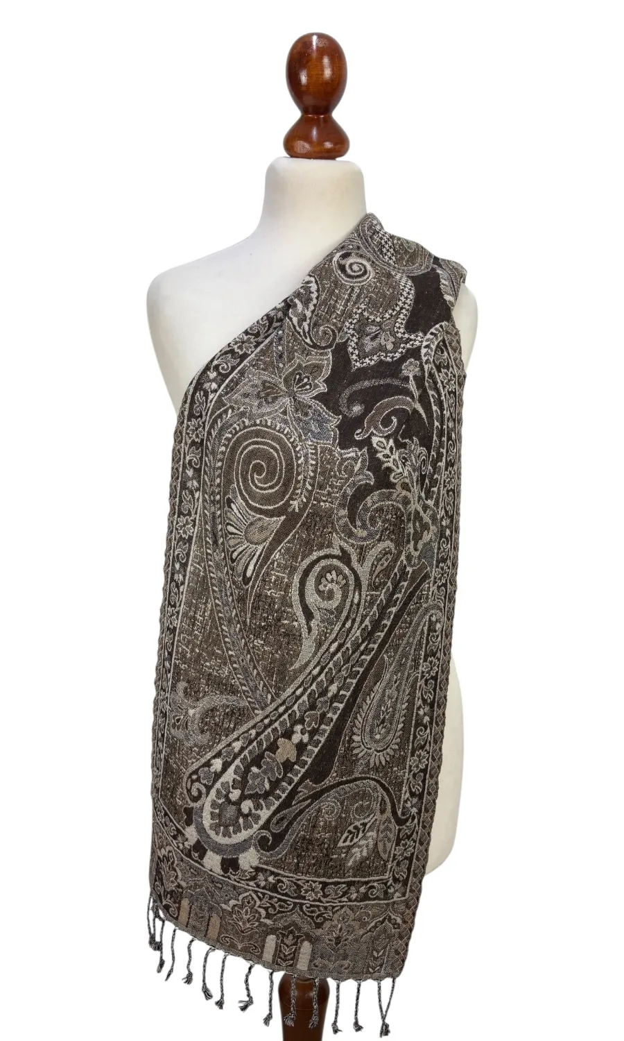 Dieser wunderschöne Schal wurde in einem kleinen Betrieb in der Region Kaschmir (Indien) gefertigt und ist eine limitierte Kollektion. Mit seiner Größe von ca. 35 cm x 160 cm lässt er sich vielseitig binden und ist für das perfekte Accessoire für eine Jacke, Pullover oder Bluse. Durch seine doppelte Webung hat der Schal zwei unterschiedliche Seiten, die sich in der Farbgebung leicht voneinander unterscheiden. Mit einem Gewicht von nur ca. 140g ist er federleicht an deinem Hals und schenkt dir wohlige Wärme.