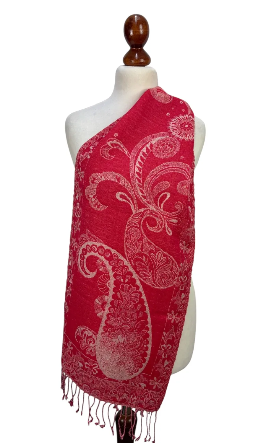 Dieser wunderschöne Schal wurde in einem kleinen Betrieb in der Region Kaschmir (Indien) gefertigt und ist eine limitierte Kollektion. Mit seiner Größe von ca. 35 cm x 160 cm lässt er sich vielseitig binden und ist für das perfekte Accessoire für eine Jacke, Pullover oder Bluse. Durch seine doppelte Webung hat der Schal zwei unterschiedliche Seiten, die sich in der Farbgebung leicht voneinander unterscheiden. Mit einem Gewicht von nur ca. 140g ist er federleicht an deinem Hals und schenkt dir wohlige Wärme.