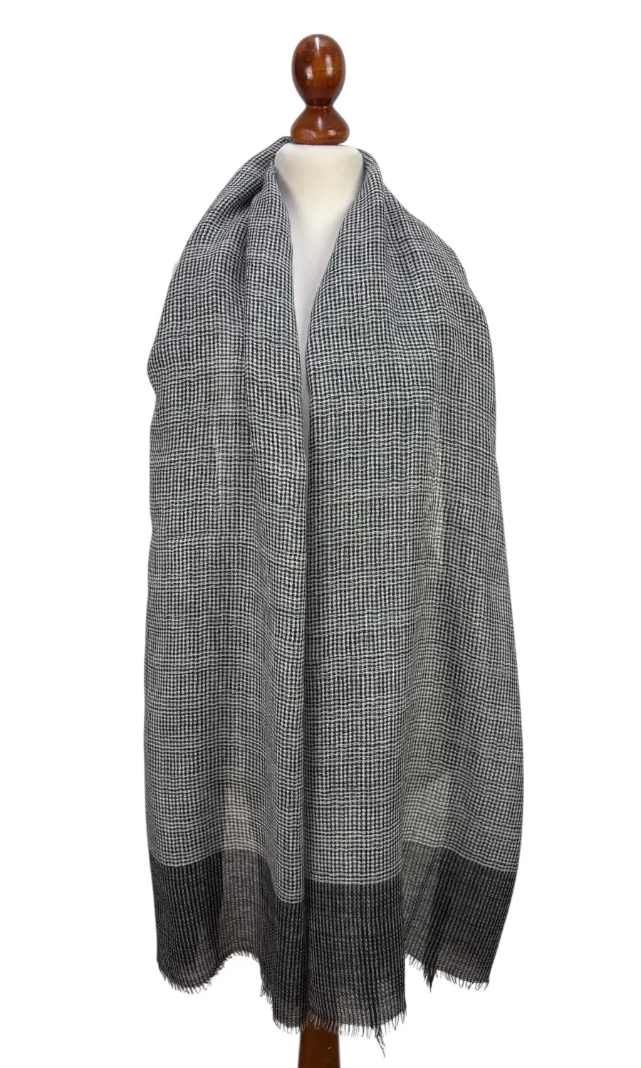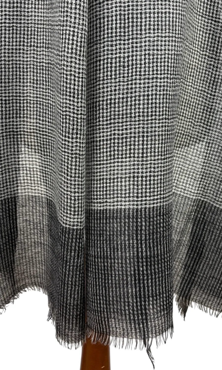 Dieser Schal wurde in Indien in einer kleinen Firma hergestellt und ist somit eine limitierte Besonderheit. Mit seiner Größe von 70cm x 200cm ist er bestens geeignet, um ihn vielseitig zu binden und zu tragen. Die feine Wolle ist hervorragend für kühlere Tage - auch an lauen Sommerabenden dient der Schal als Jackenersatz, großflächig um die Schultern getragen. Mit einem Gewicht von nur 110g ist er der perfekte Begleiter im Alltag und verzaubert mit seinem klassisch eleganten Design.
