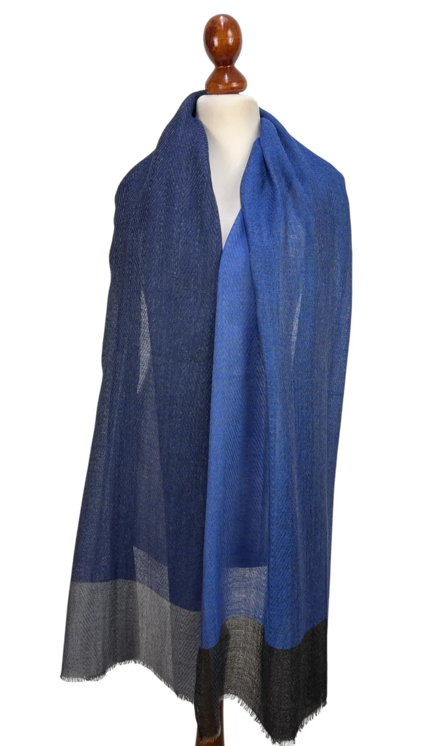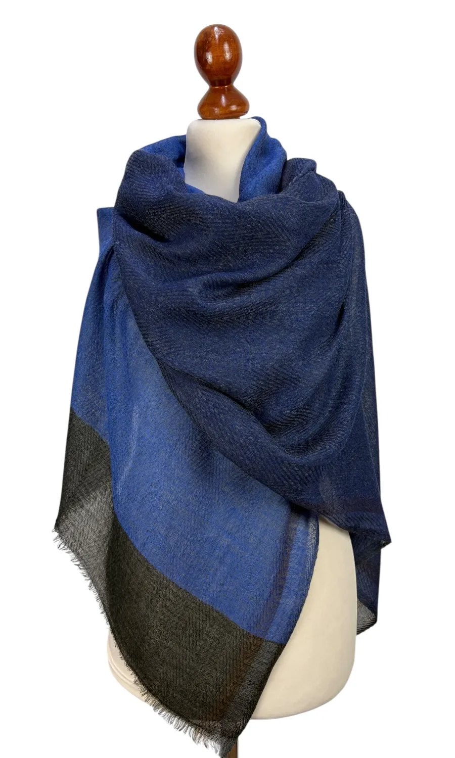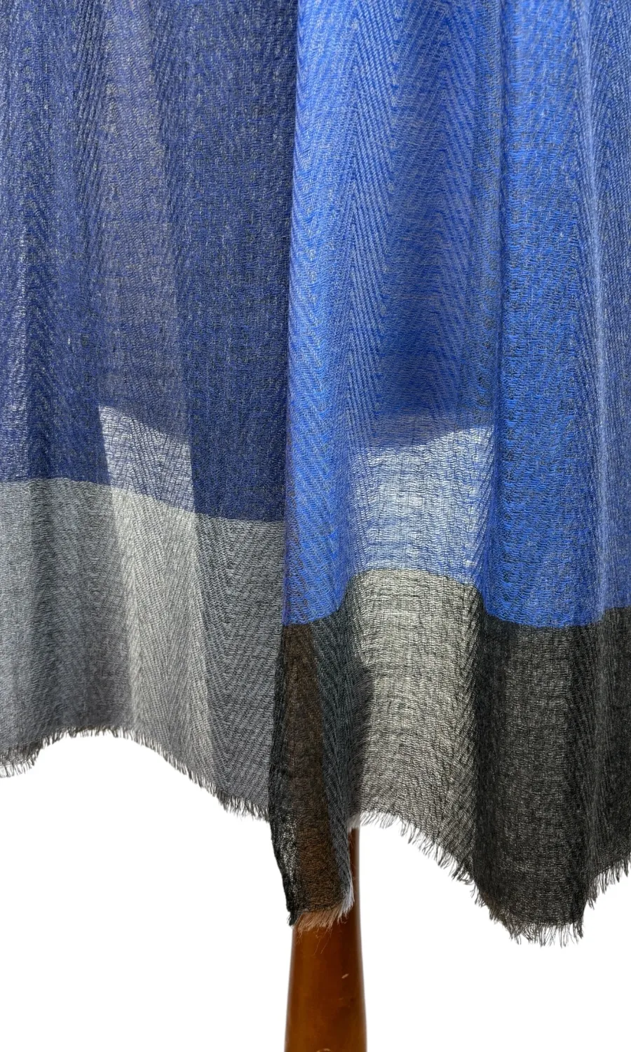 Dieser Schal wurde in Indien in einer kleinen Firma hergestellt und ist somit eine limitierte Besonderheit. Mit seiner Größe von 70cm x 200cm ist er bestens geeignet, um ihn vielseitig zu binden und zu tragen. Die feine Wolle ist hervorragend für kühlere Tage - auch an lauen Sommerabenden dient der Schal als Jackenersatz, großflächig um die Schultern getragen. Mit einem Gewicht von nur 110g ist er der perfekte Begleiter im Alltag und verzaubert mit seinem klassisch eleganten Design.