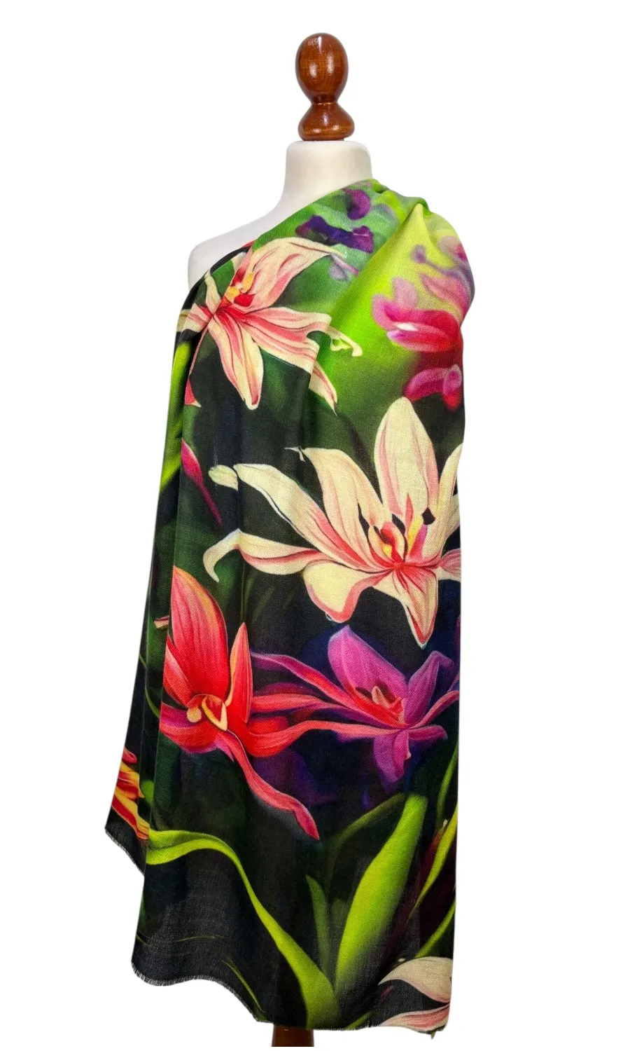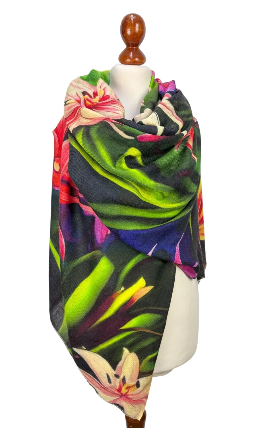 Dieser tolle Schal wurde in einer kleinen Firma in Indien gefertigt und ist streng limitiert. Hergestellt aus hochwertiger Merinowolle, bietet er ein luxuriöses und weiches Tragegefühl. Die feinen Merinofasern sorgen für Wärme und Komfort, während das einzigartige Blumenmuster einen Hauch von Eleganz und Frische verleiht.