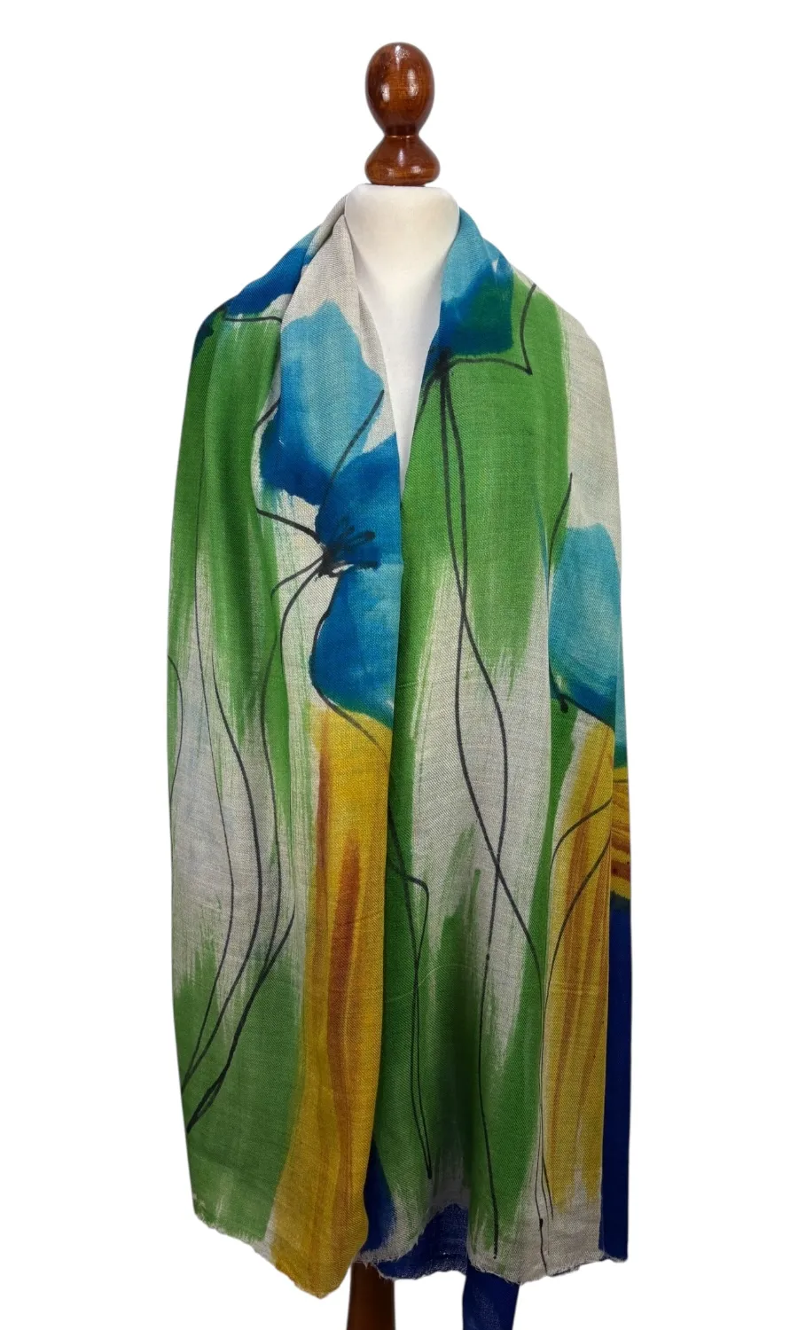 Dieser tolle Schal wurde in einer kleinen Firma in Indien gefertigt und ist streng limitiert. Hergestellt aus hochwertiger Merinowolle, bietet er ein luxuriöses und weiches Tragegefühl. Die feinen Merinofasern sorgen für Wärme und Komfort, während das einzigartige Blumenmuster einen Hauch von Eleganz und Frische verleiht.