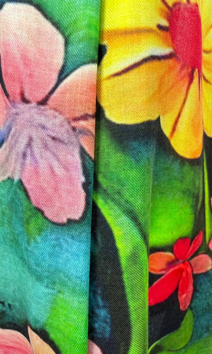 Dieser tolle Schal wurde in einer kleinen Firma in Indien gefertigt und ist streng limitiert. Hergestellt aus hochwertiger Merinowolle, bietet er ein luxuriöses und weiches Tragegefühl. Die feinen Merinofasern sorgen für Wärme und Komfort, während das einzigartige Blumenmuster einen Hauch von Eleganz und Frische verleiht.