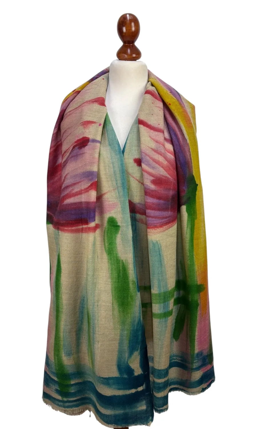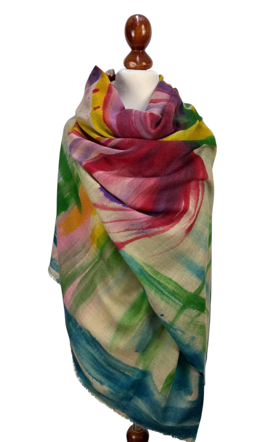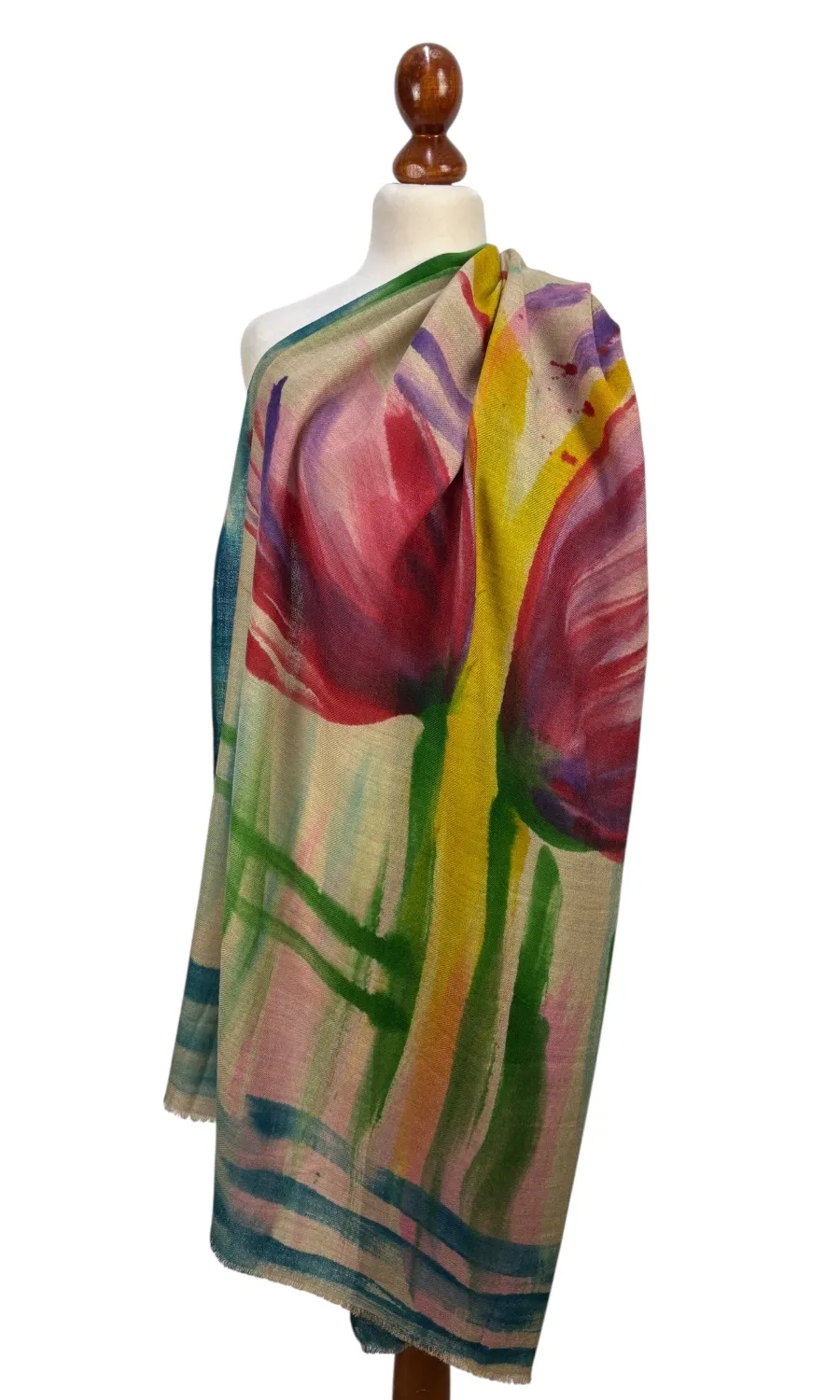Dieser tolle Schal wurde in einer kleinen Firma in Indien gefertigt und ist streng limitiert. Hergestellt aus hochwertiger Merinowolle, bietet er ein luxuriöses und weiches Tragegefühl. Die feinen Merinofasern sorgen für Wärme und Komfort, während das einzigartige Blumenmuster einen Hauch von Eleganz und Frische verleiht.