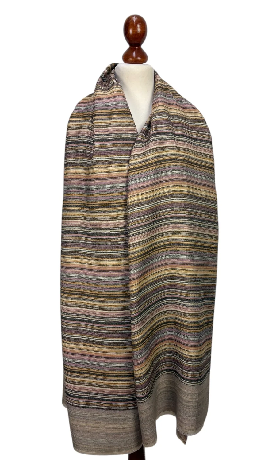 Hochwertig gefertigter Schal aus feiner Wolle mit Streifenmuster.